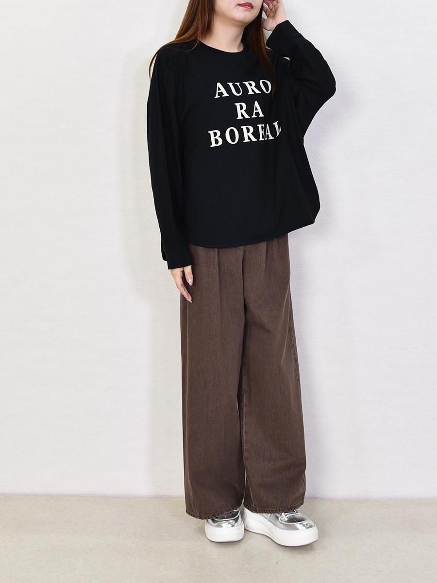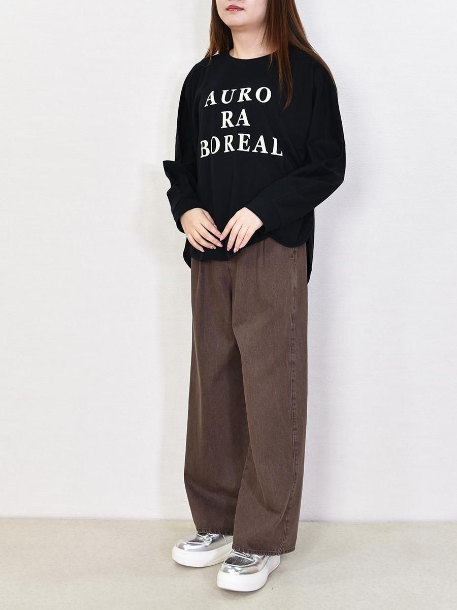 trois(トロワ)のフロッキープリントロンT。程よい膨らみのあるコットン100%の天竺を使った長袖Tシャツ。
