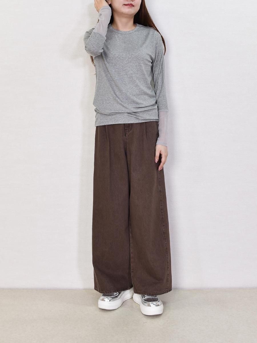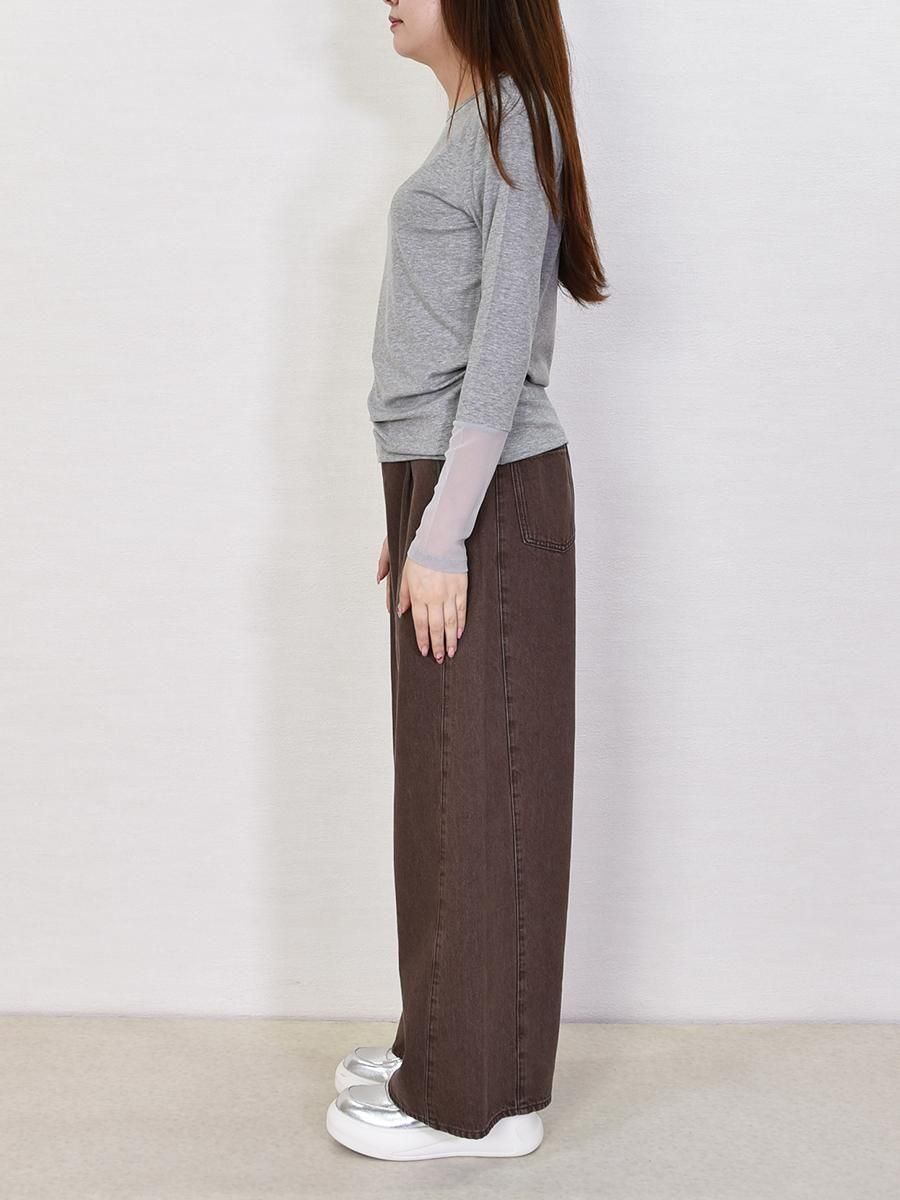 シンプルなトップスを合わせるだけで旬のスタイルが完成します。