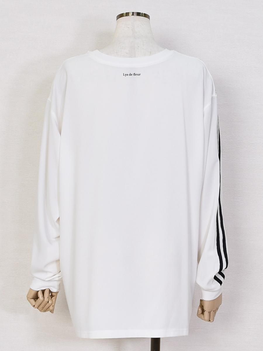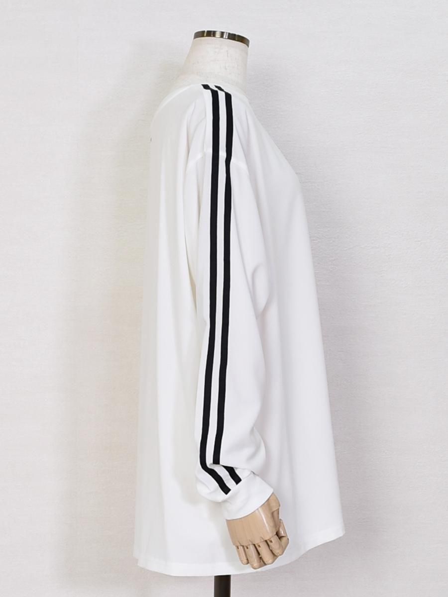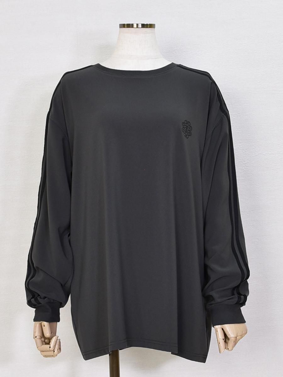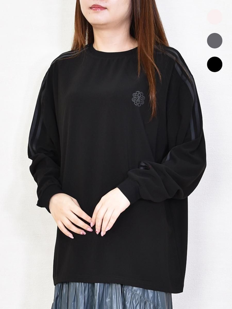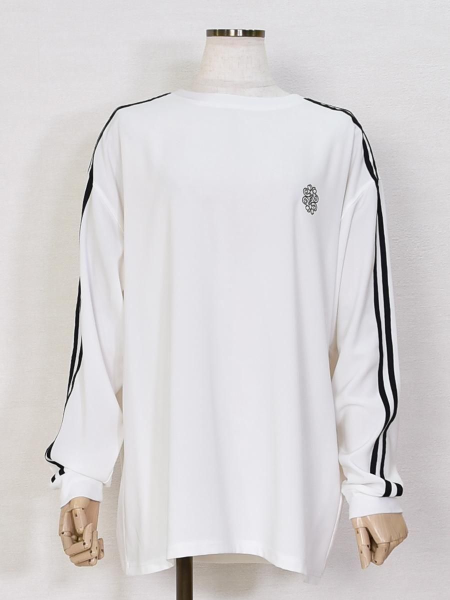 PASSIONE(パシオーネ)のショルダーラインワンポイント刺繡プルオーバー。肩から袖にかけて入った2本ラインがスポーティなアクセントになった1枚。