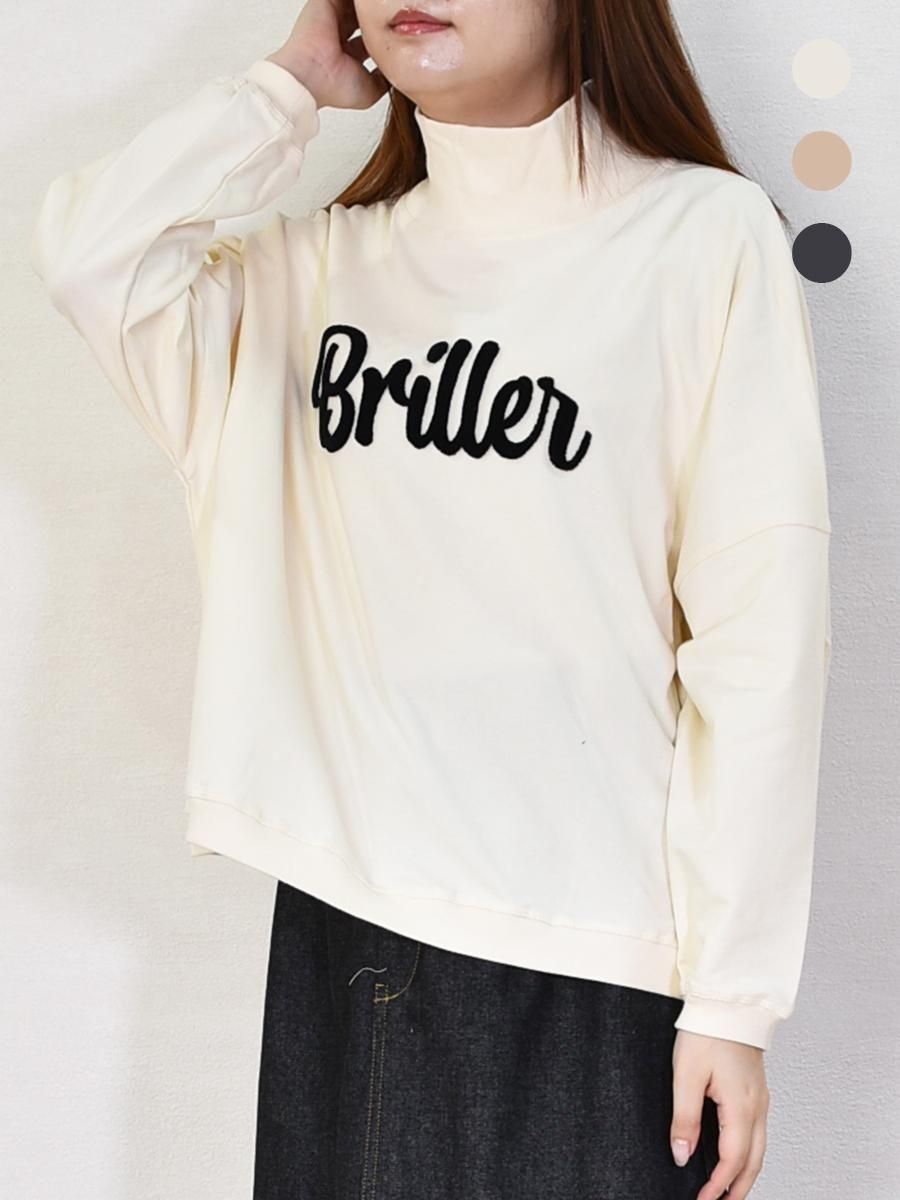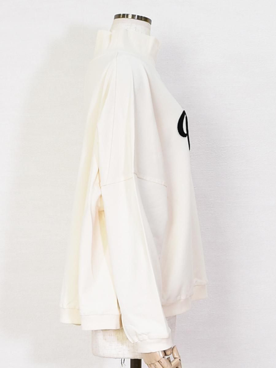 MARIED'OR(マリードール)のハイネック芝生刺繡ミニ裏毛ワイドプルオーバー。ふんわり柔らかな風合いが心地よいハイネックスウェット。