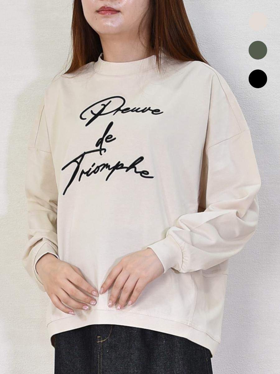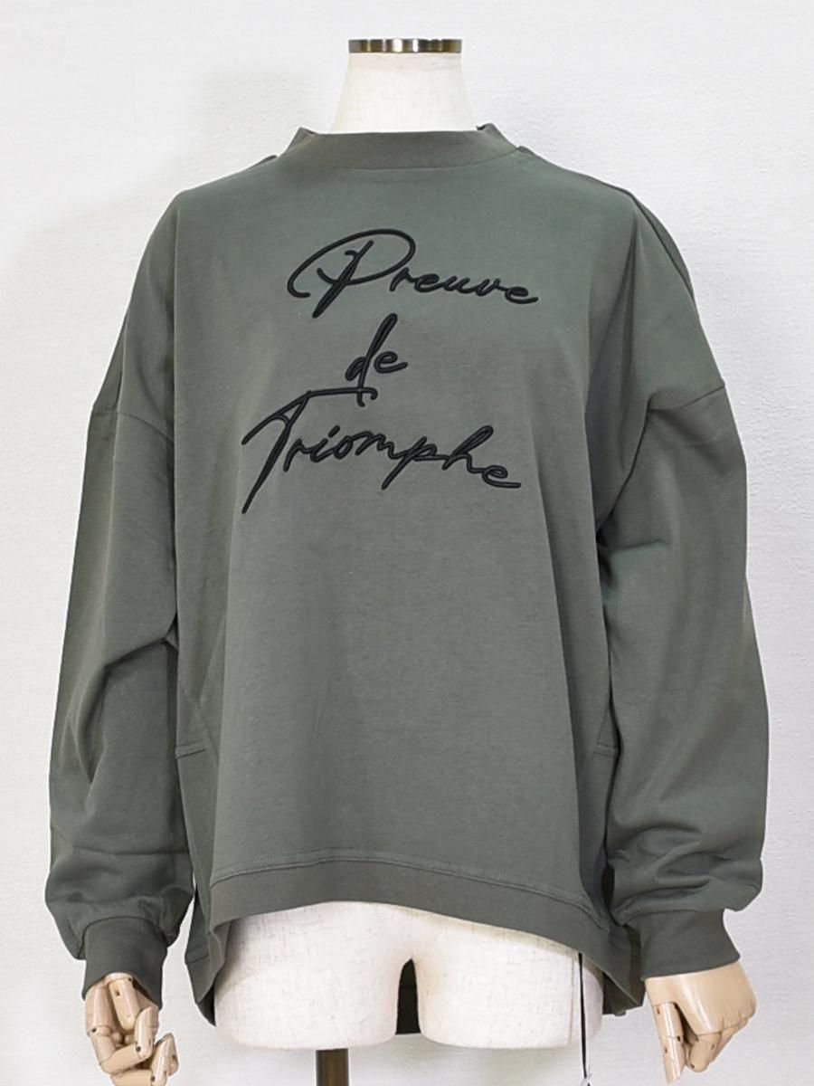MARIED'OR (マリードール) ハイネック 芝生刺繡 ミニ裏毛ワイドプルオーバー