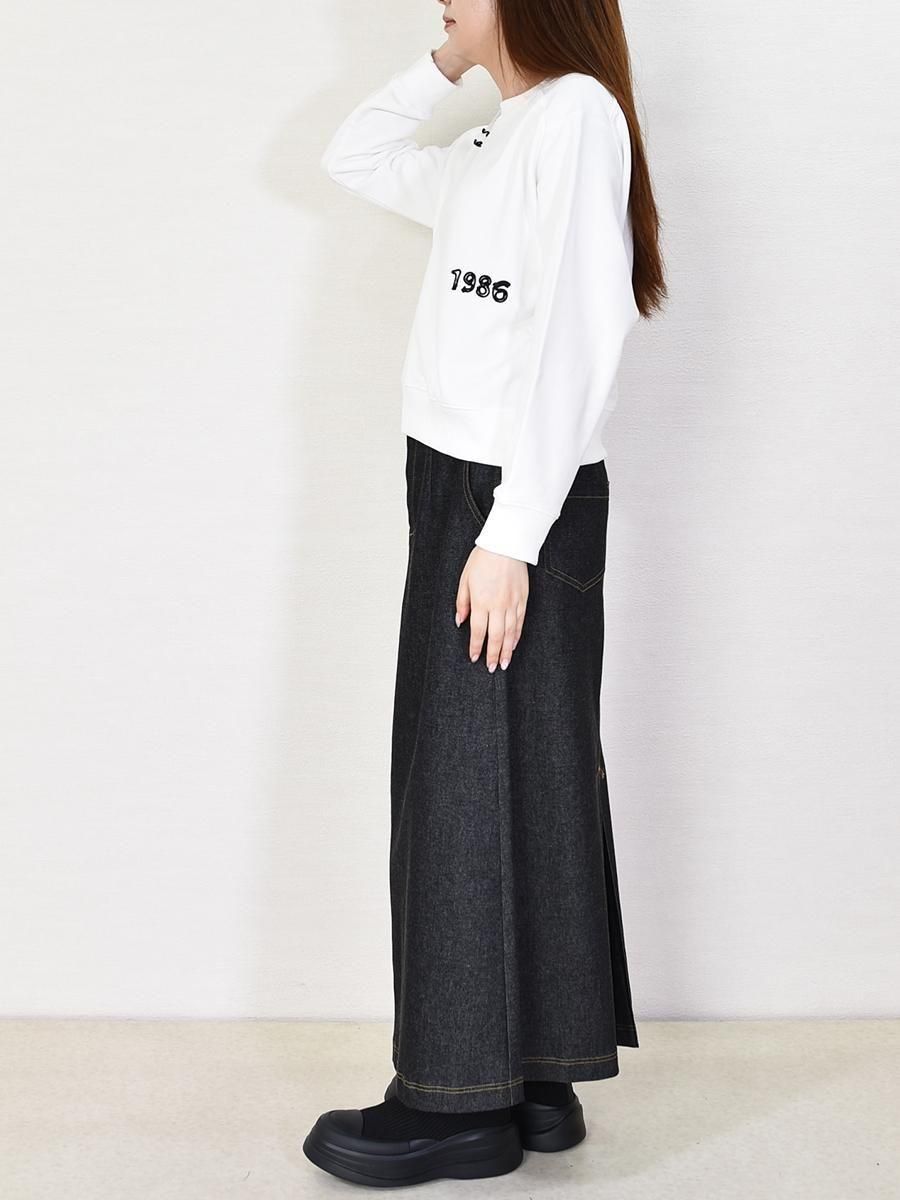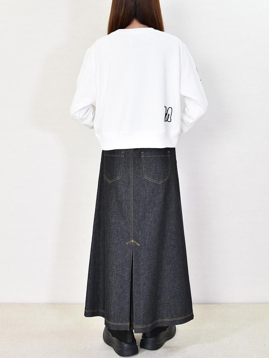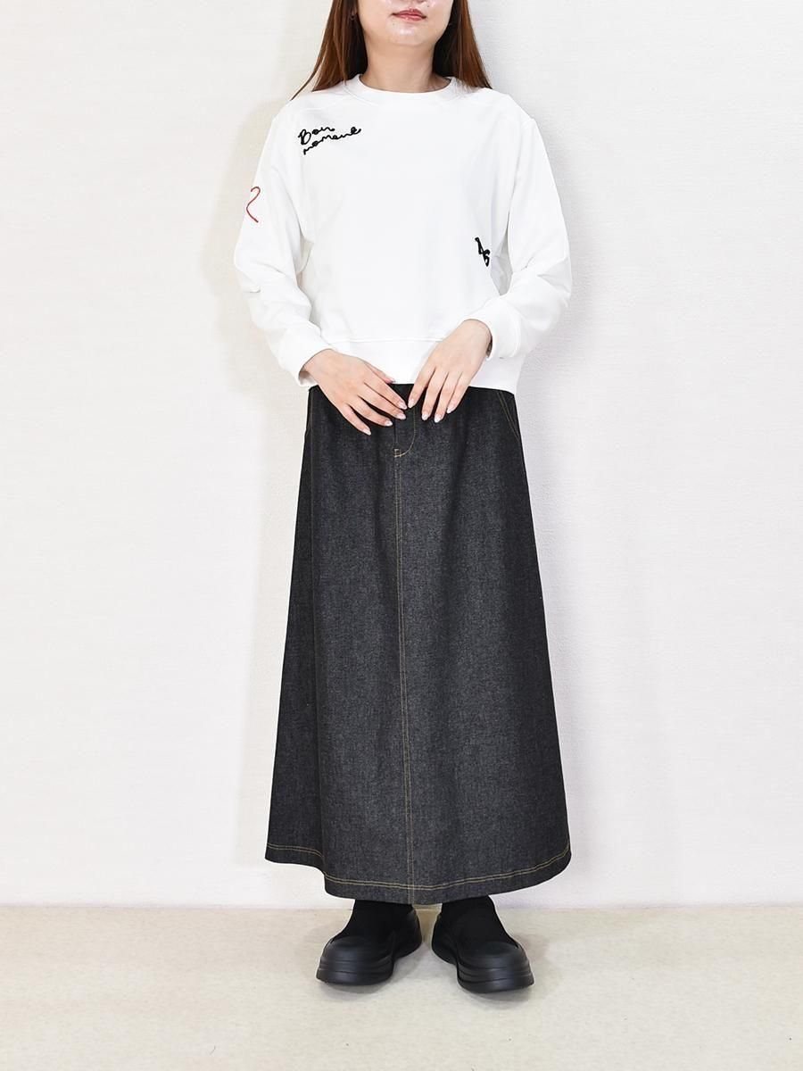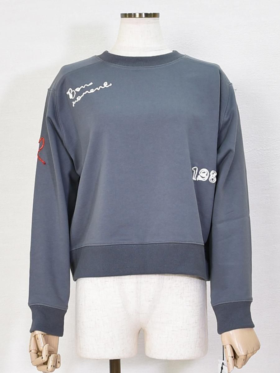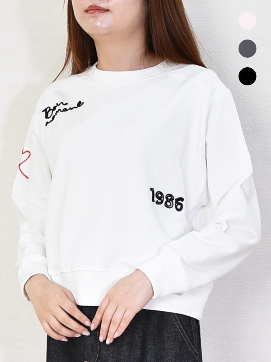 MARIED'OR(マリードール)の裏毛コード刺繡コンパクトプルオーバー。遊び心ある刺繍ロゴが印象的なクルーネックスウェット。