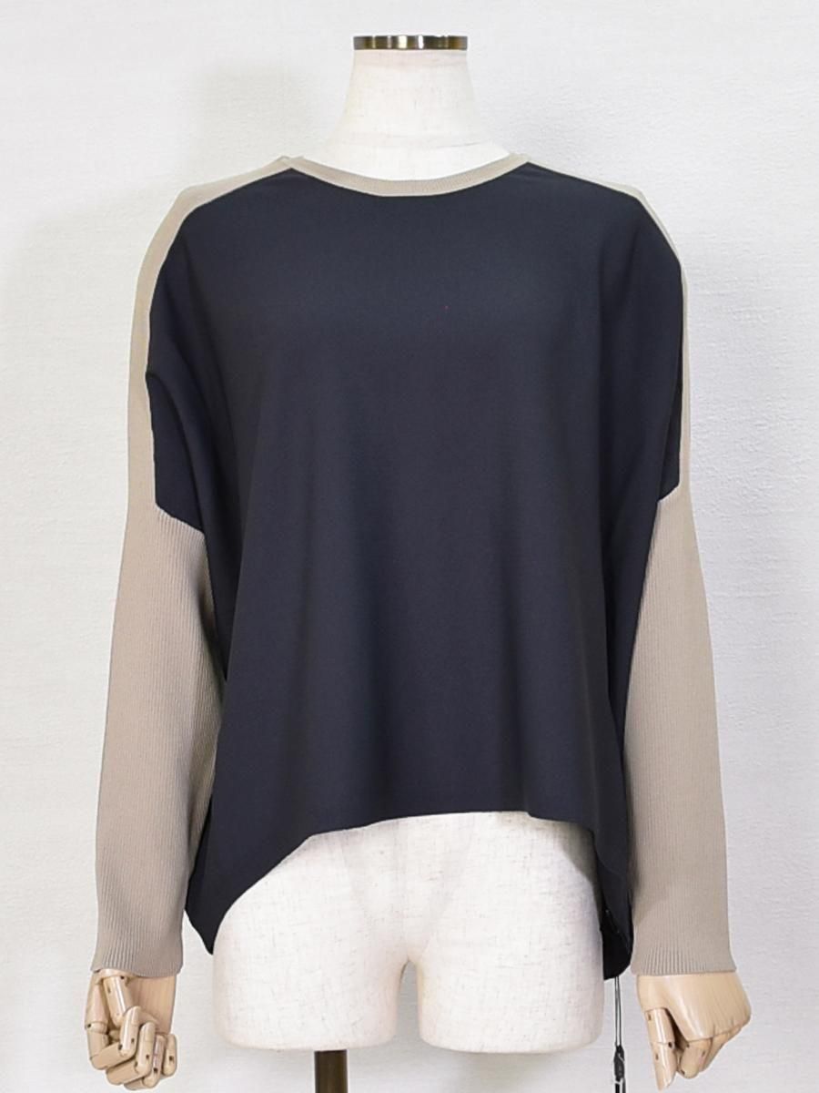 MARIED'OR(マリードール)のリブ配色切替ワイドプルオーバー。配色が印象的なバイカラープルオーバー。