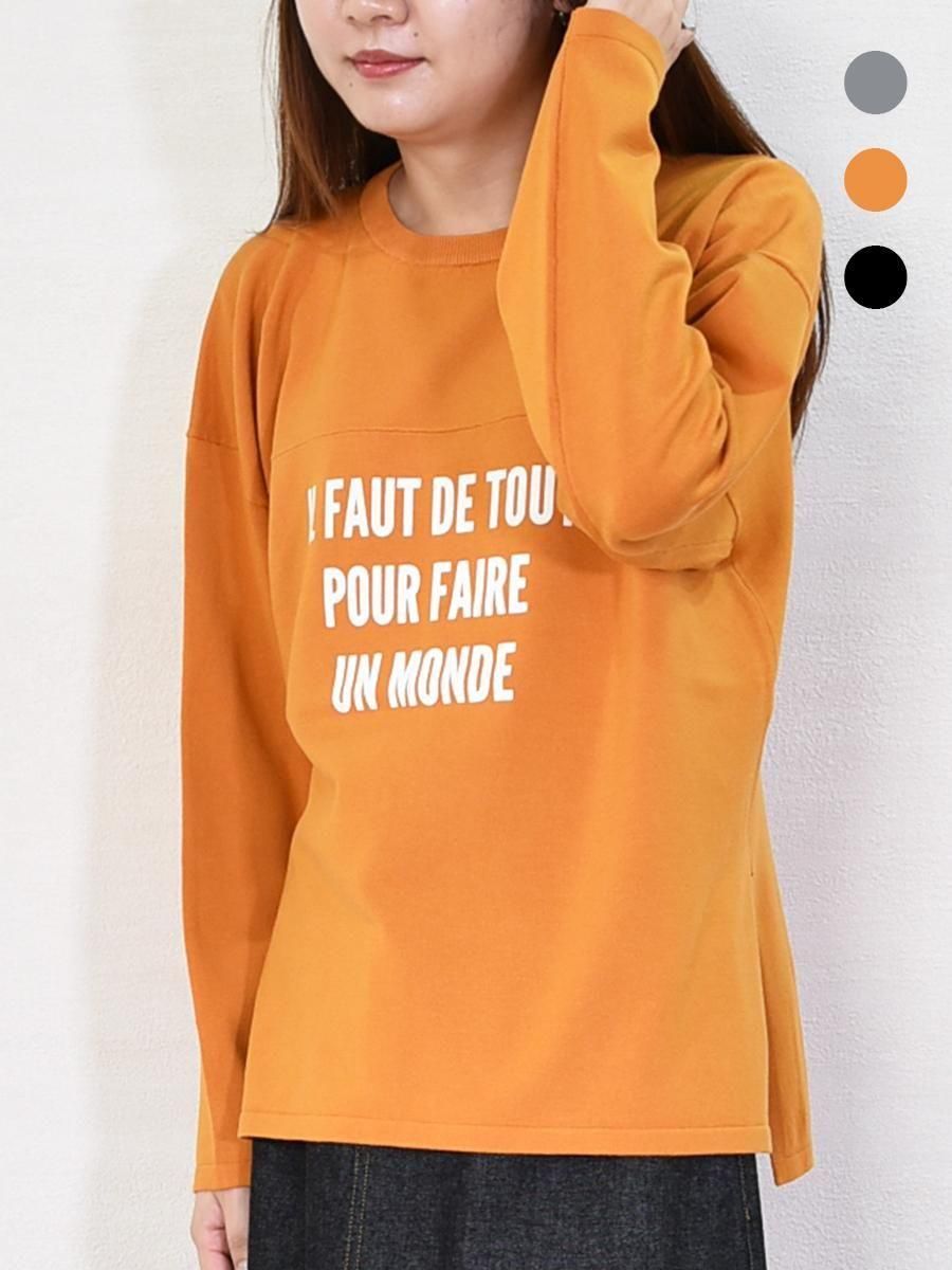 MARIED'OR(マリードール)のフロッキーロゴプリントオーバーサイズプルオーバー。フロントのフレンチロゴが目を惹くロングスリーブプルオーバー。
