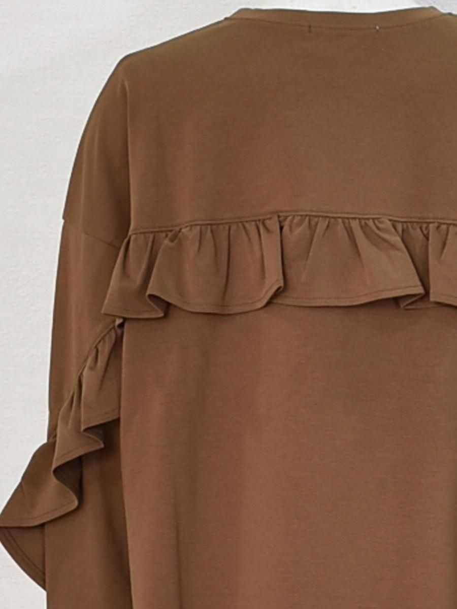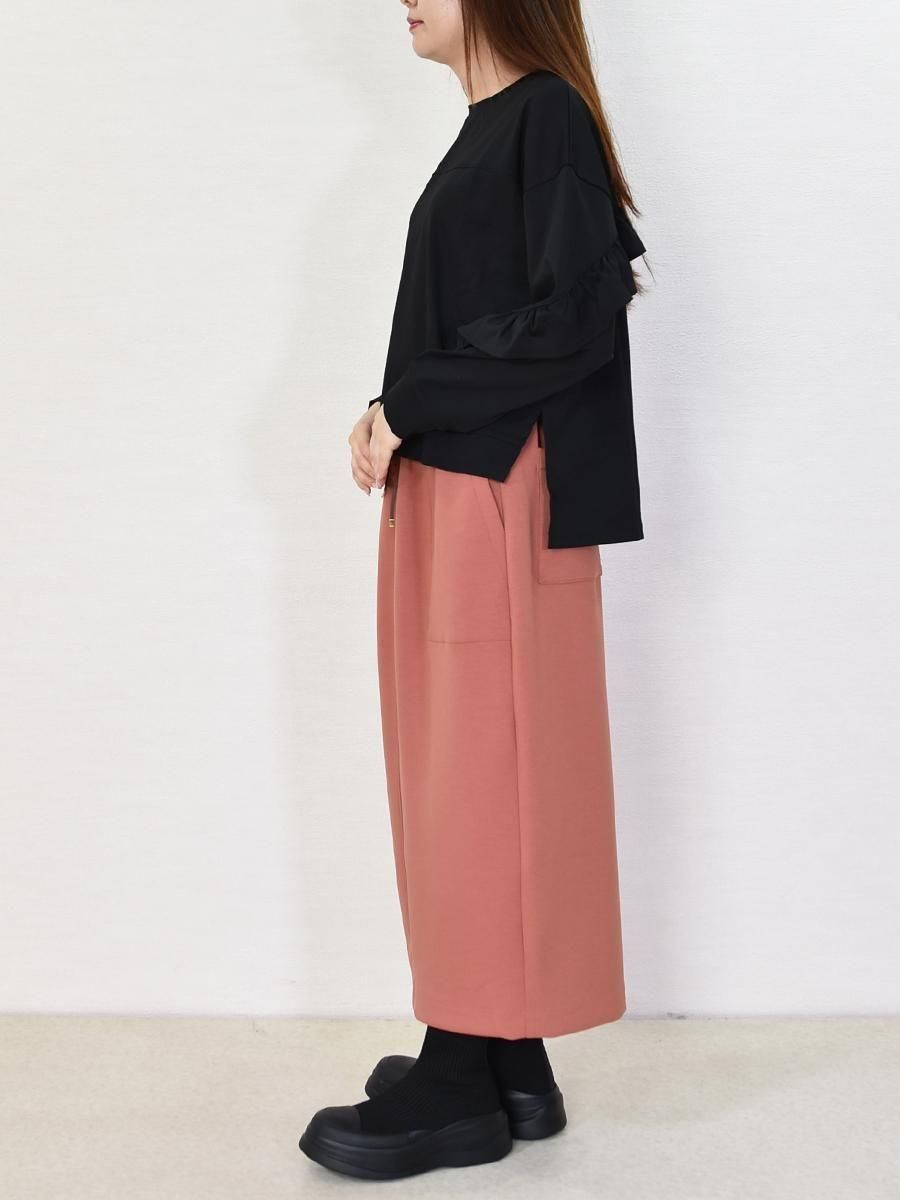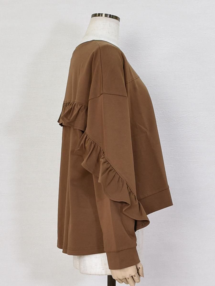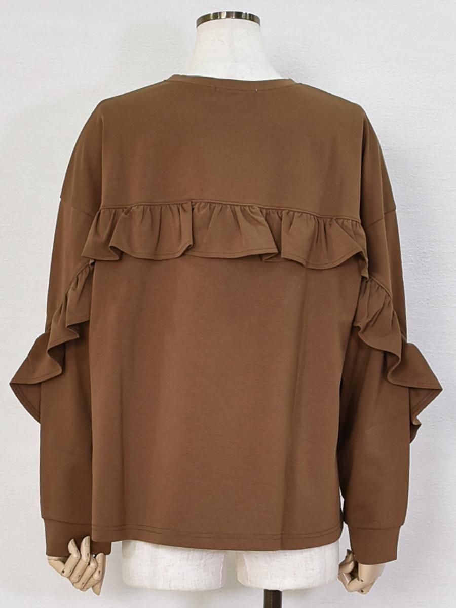 バックからお袖の前までフリルがあしらわれており、秋口にオススメの1枚です。