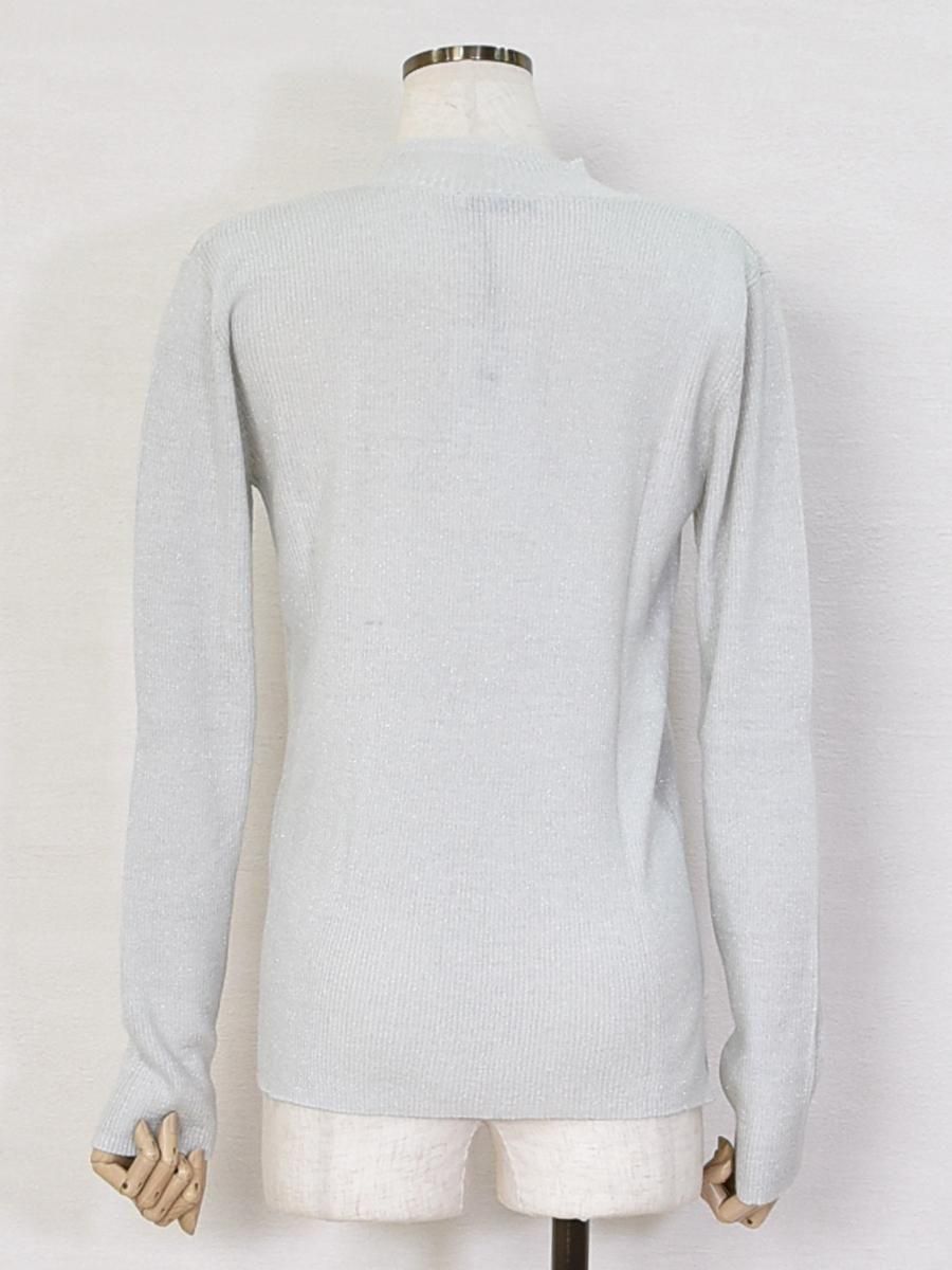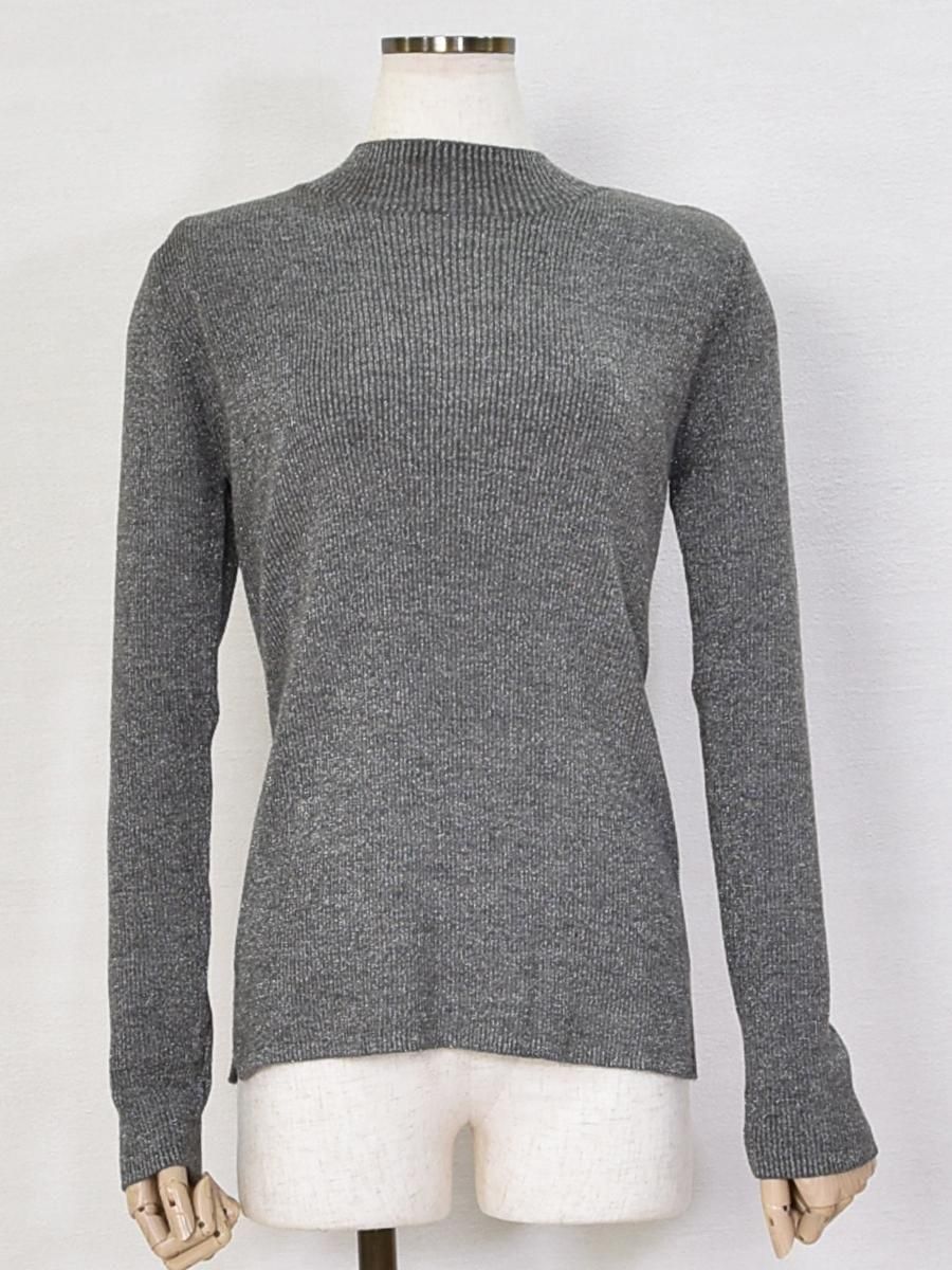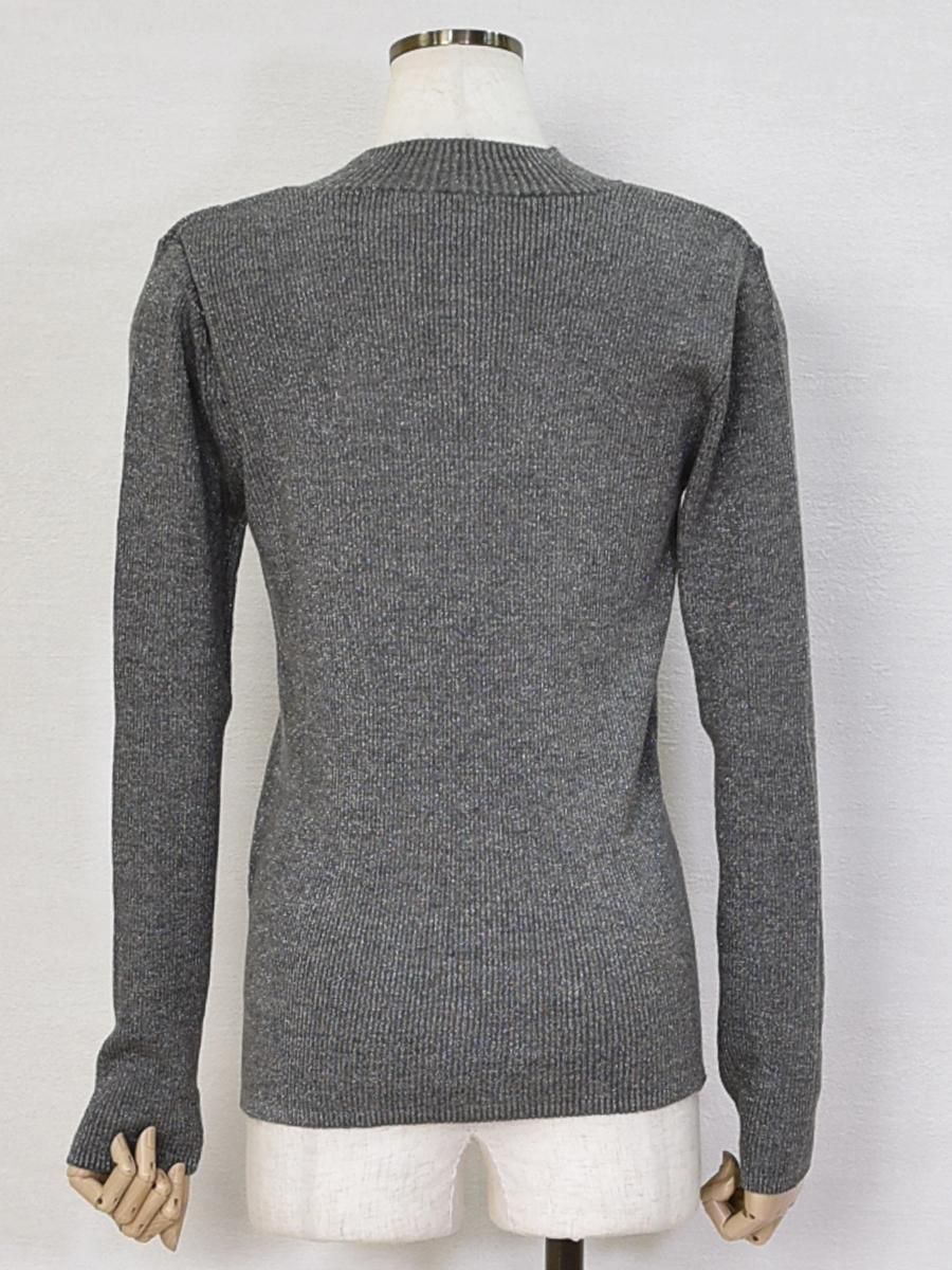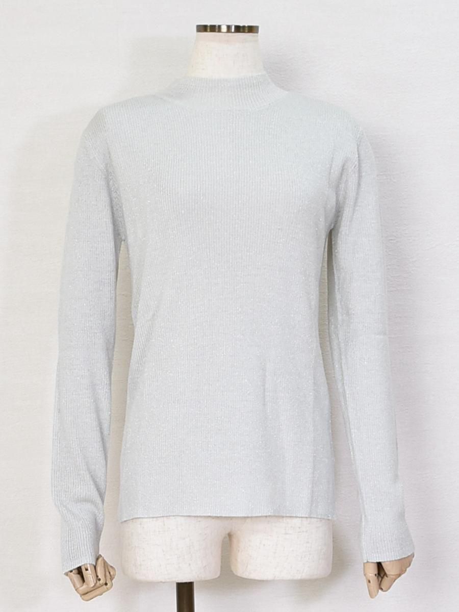 trois(トロワ)のラメニットプルオーバー。繊細なラメ糸を織り込んだ、上品なきらめきのリブニットプルオーバー。