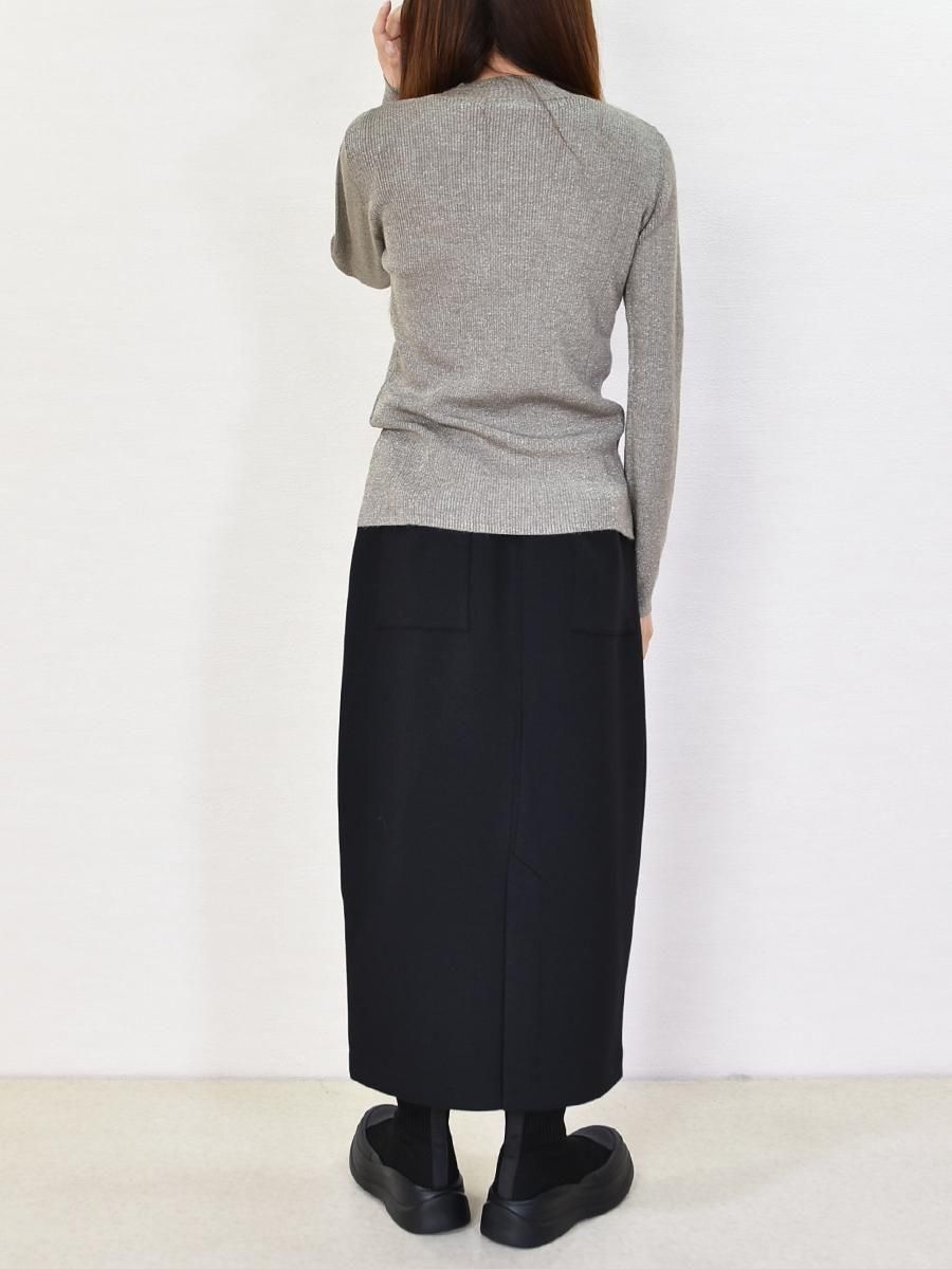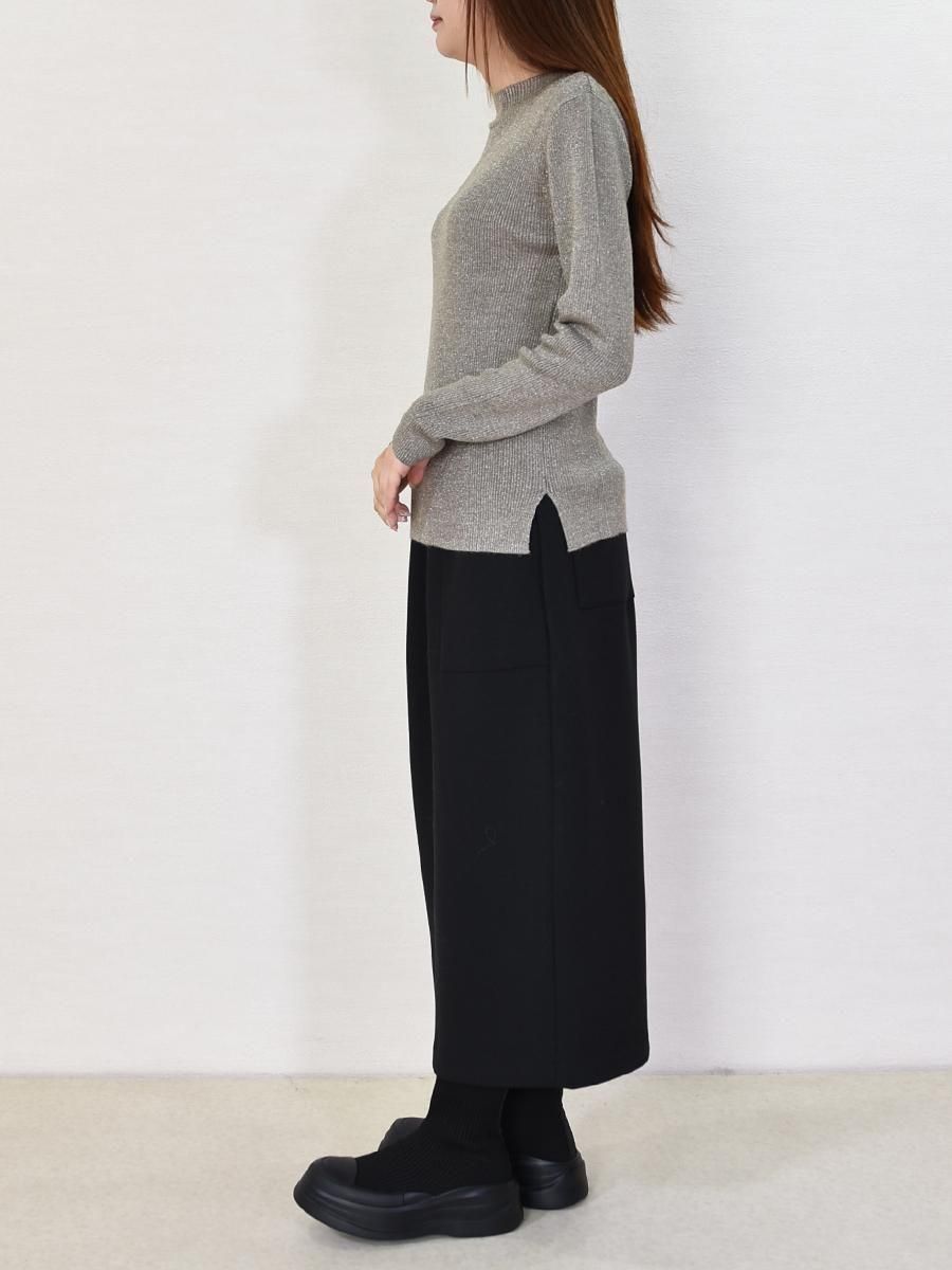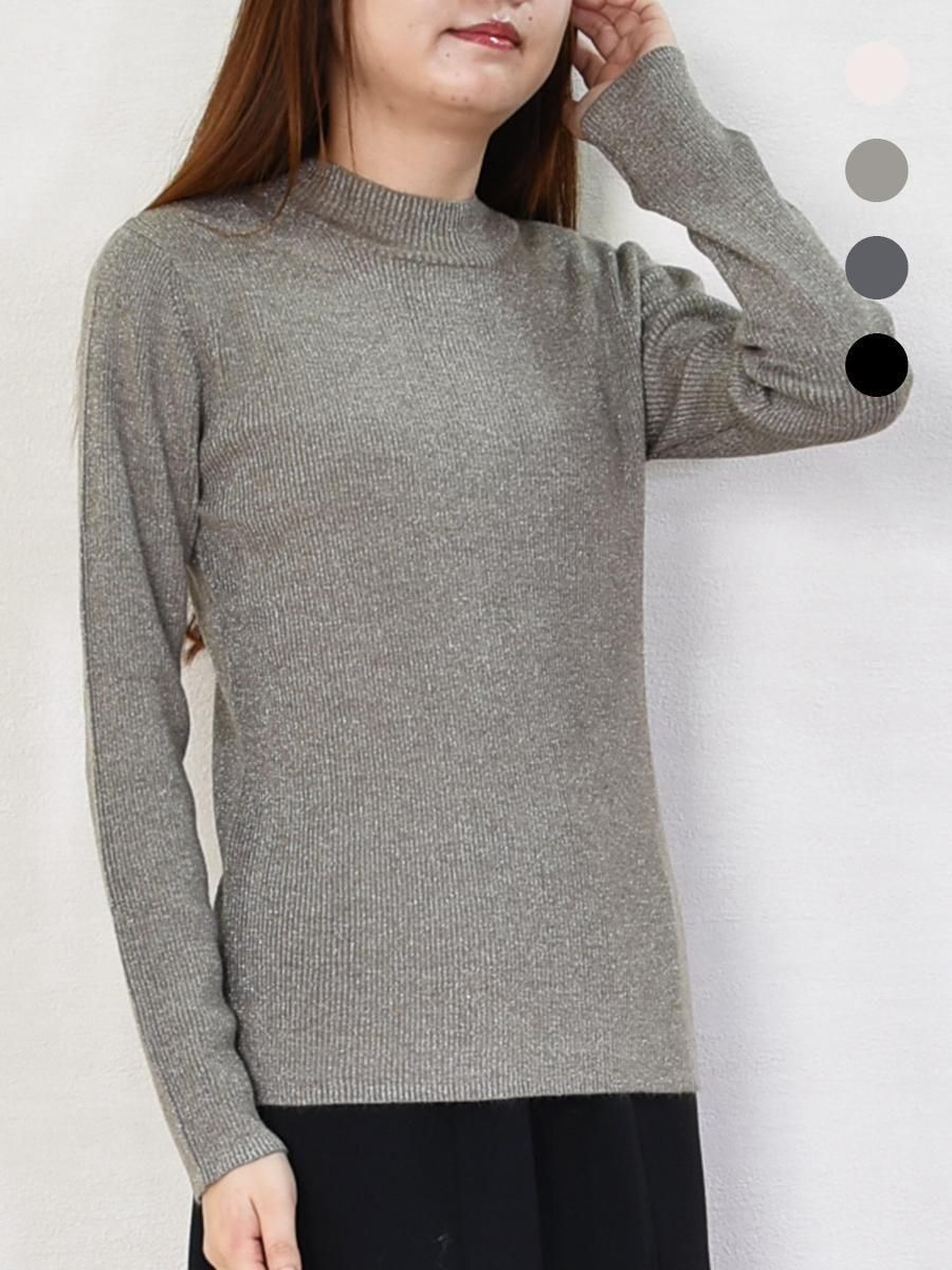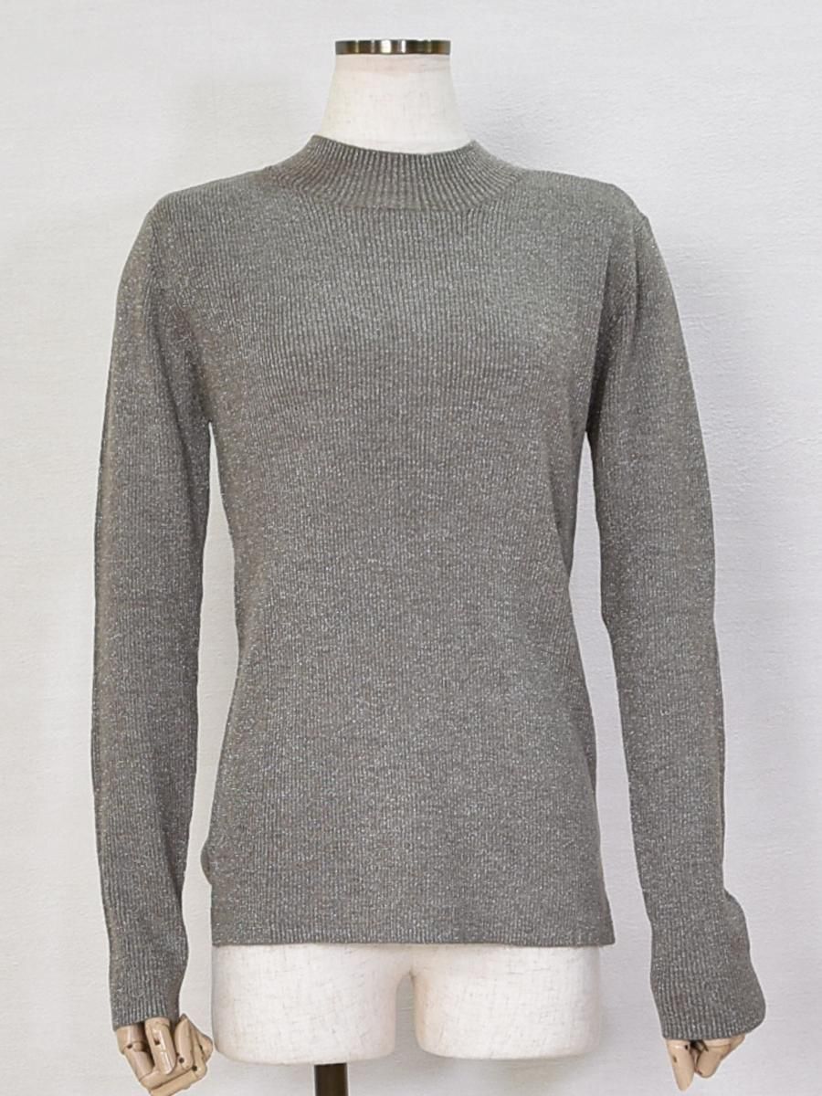 trois(トロワ)のラメニットプルオーバー。繊細なラメ糸を織り込んだ、上品なきらめきのリブニットプルオーバー。