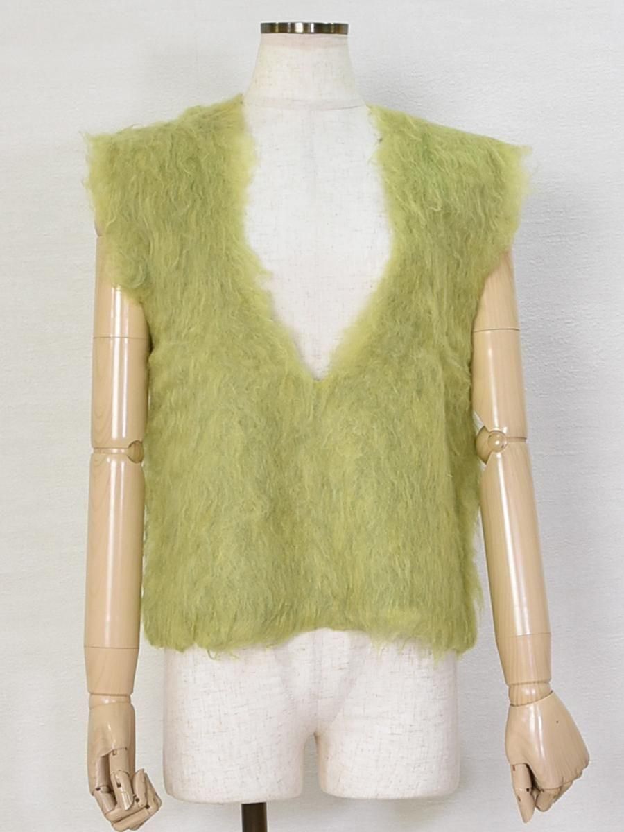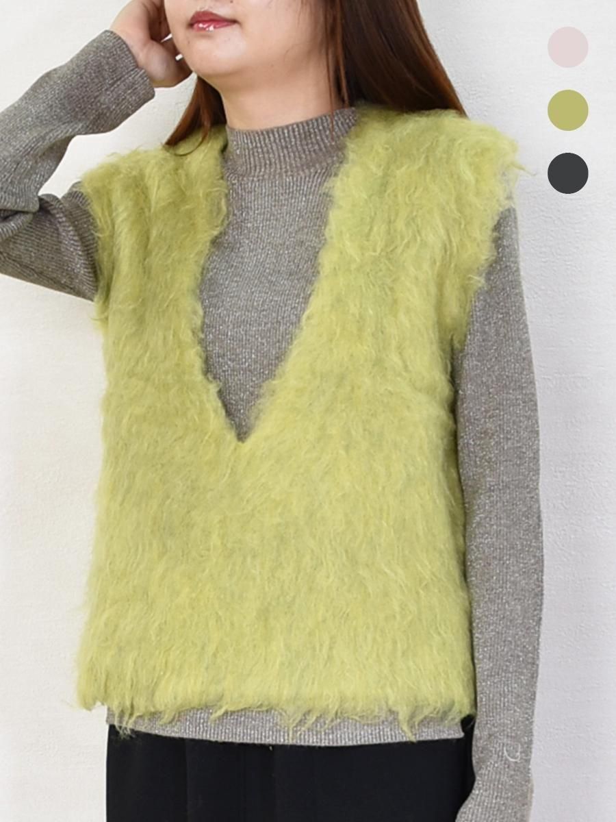 PASSIONE(パシオーネ)のVネックシャギーベスト。ふんわりとした毛足が印象的なシャギーベスト。