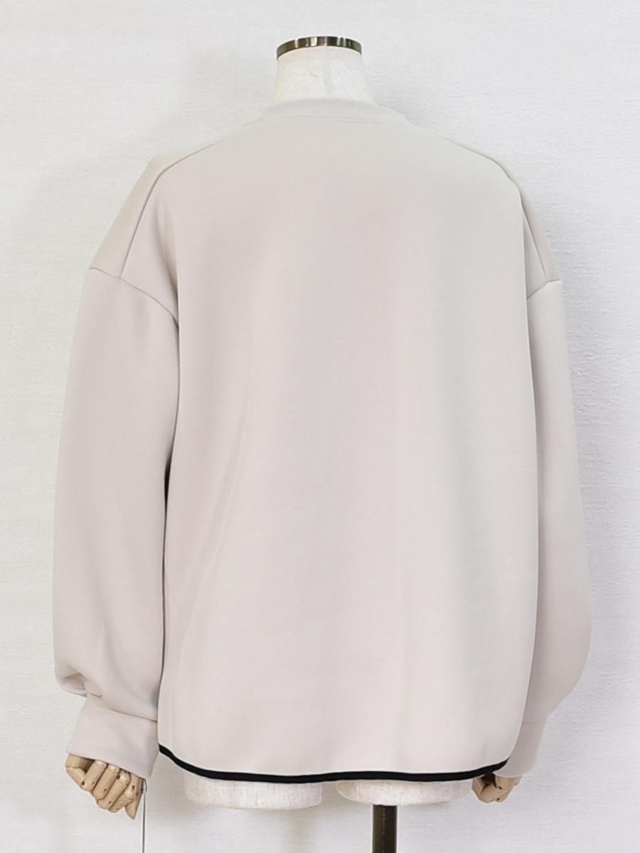 ロゴと同色の裾のパイピングがさりげないアクセント。
