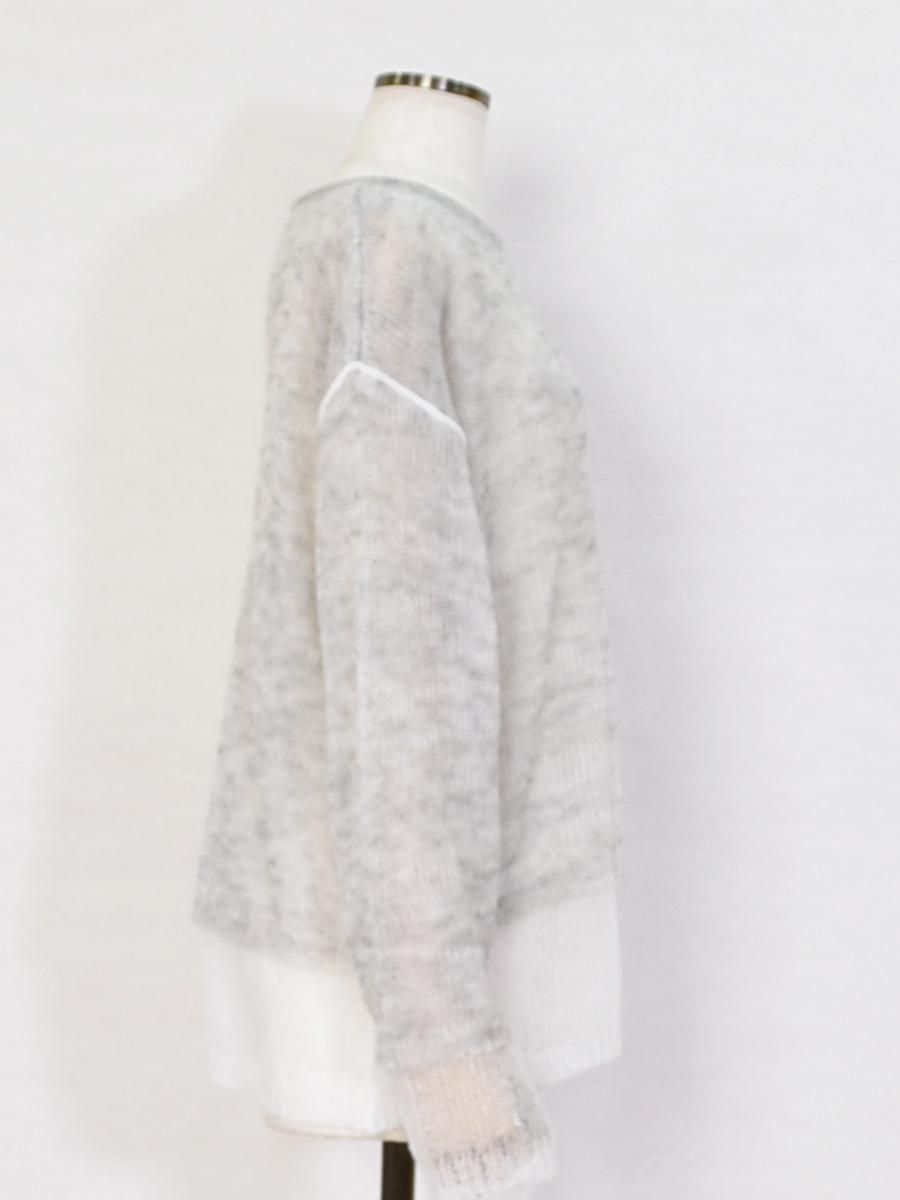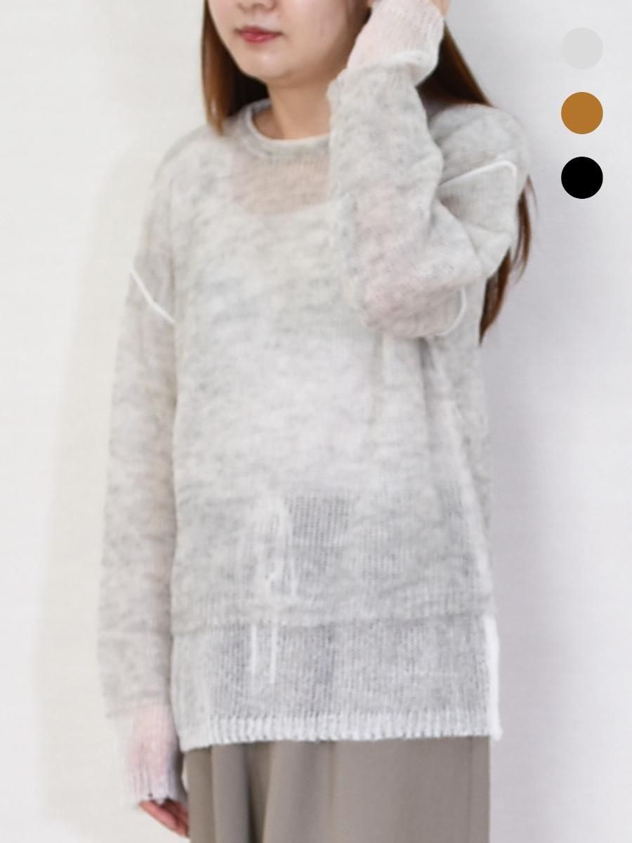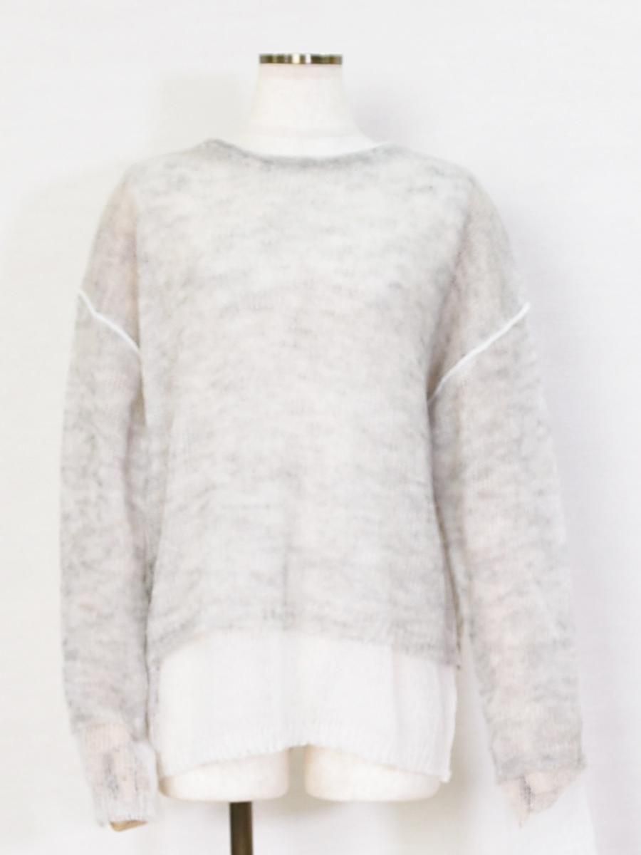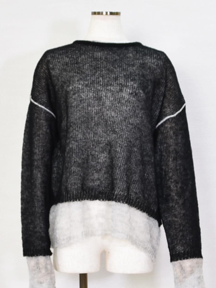 PASSIONE(パシオーネ)のバイカラープルオーバー。ふんわりとした透け感が魅力のモヘヤ混ニットプルオーバー。
