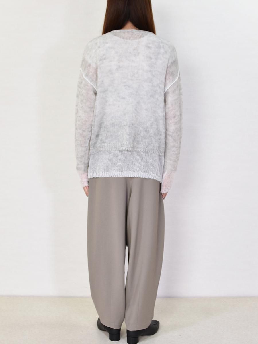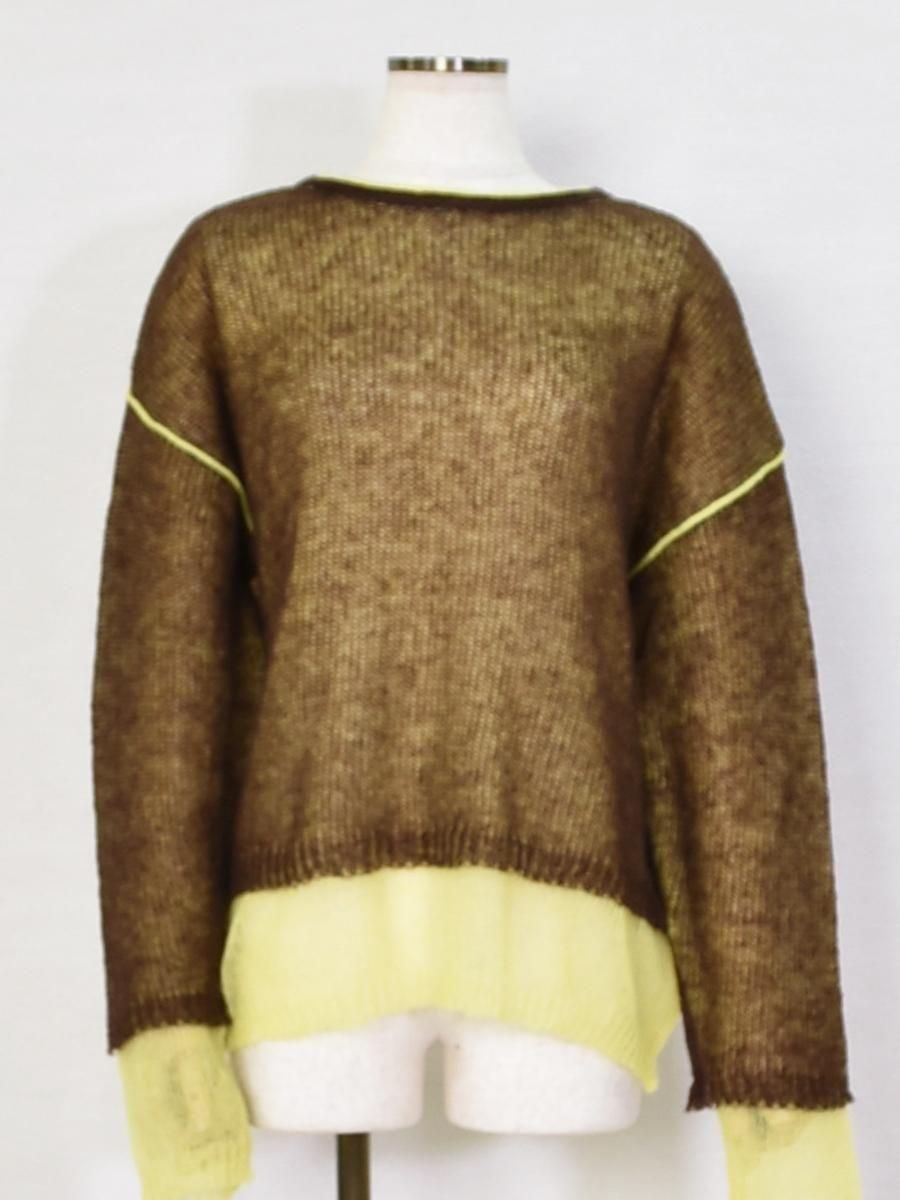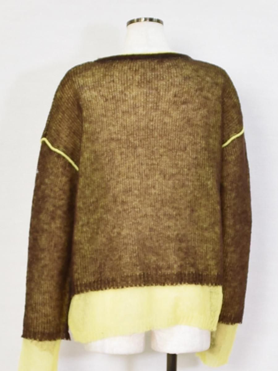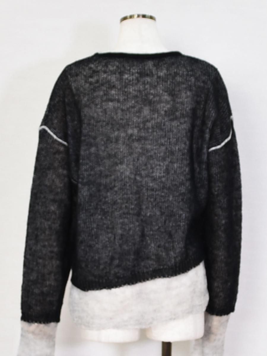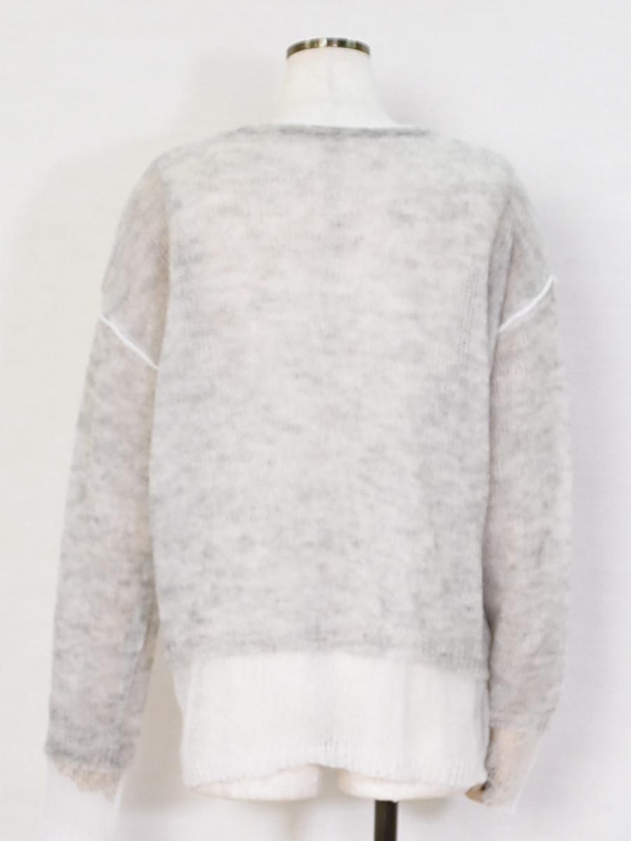 PASSIONE(パシオーネ)のバイカラープルオーバー。ふんわりとした透け感が魅力のモヘヤ混ニットプルオーバー。