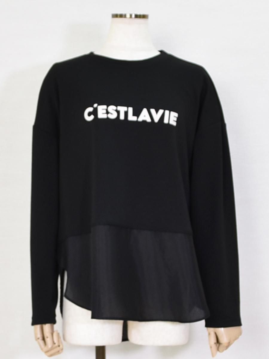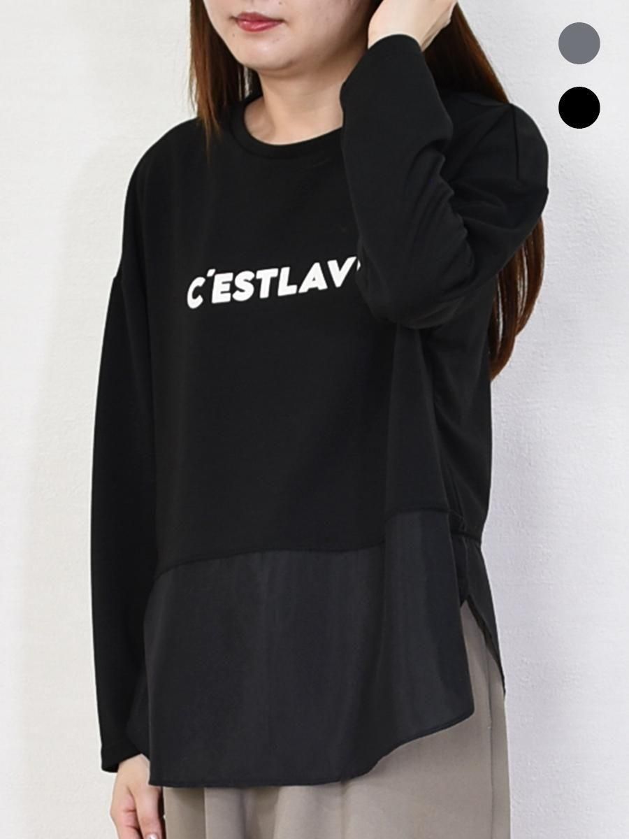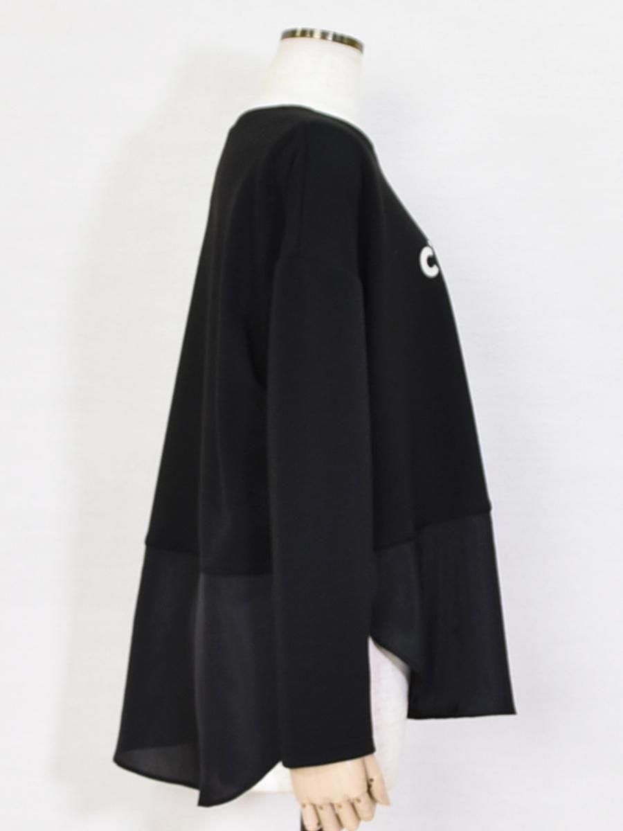 mink chair(ミンクチェアー)のロゴプリントサテンドッキングプルオーバー。異素材ドッキングが魅力のロゴプリントプルオーバー。