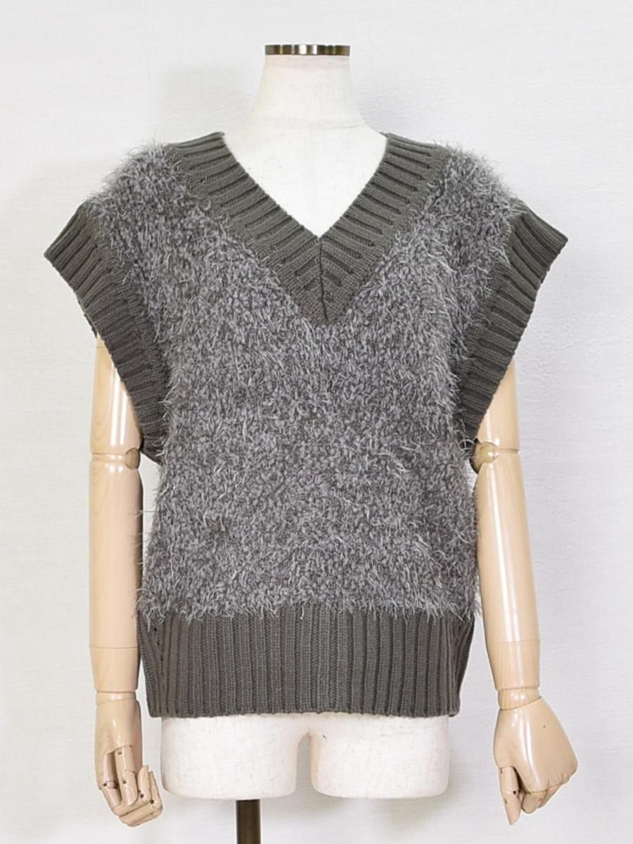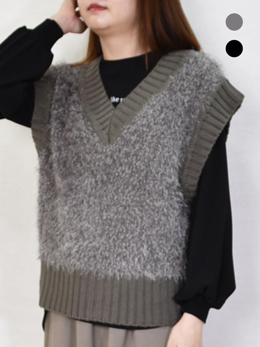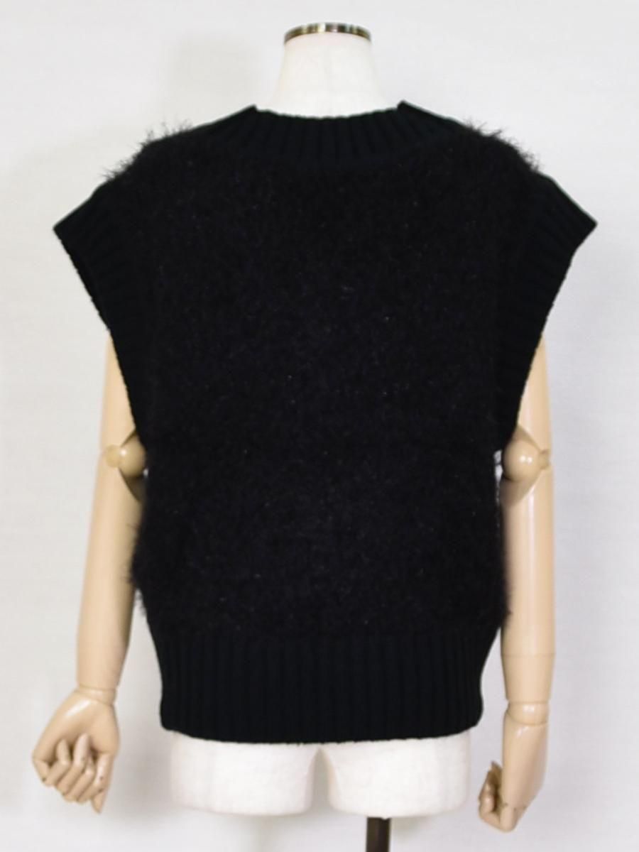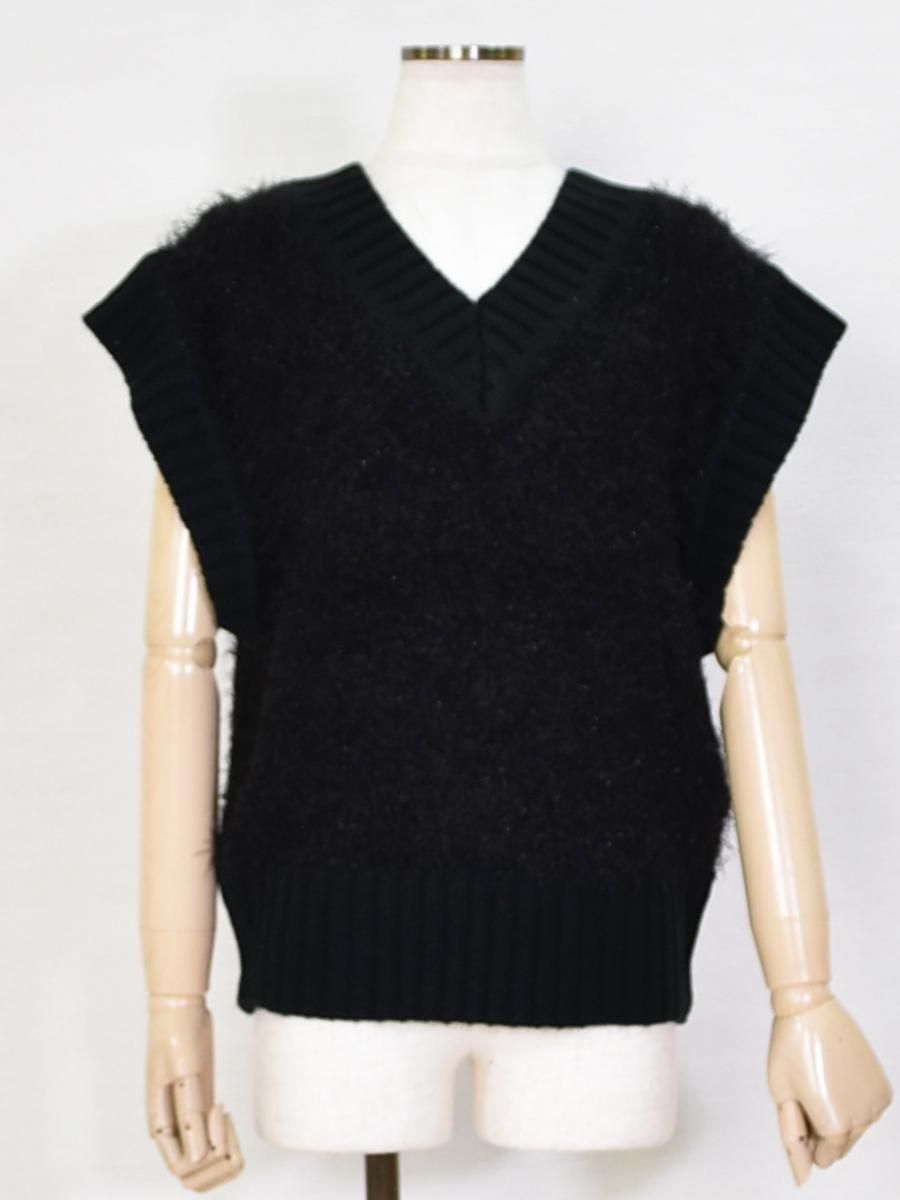 mink chair(ミンクチェアー)のVネックモールニットベスト。ふんわりとしたシャギーニットが目を惹くVネックベスト。