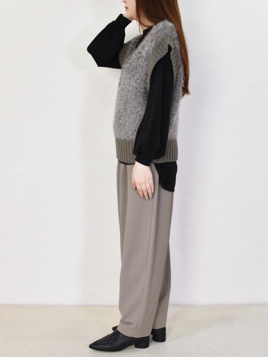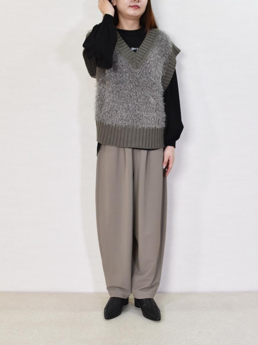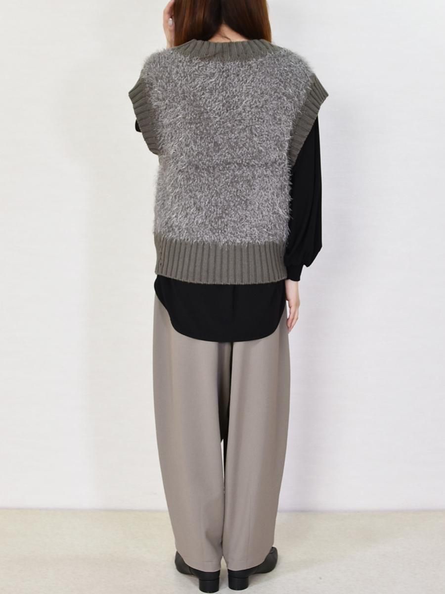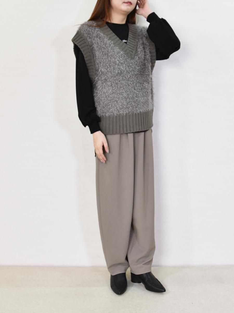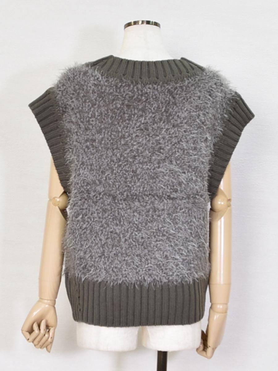 mink chair(ミンクチェアー)のVネックモールニットベスト。ふんわりとしたシャギーニットが目を惹くVネックベスト。