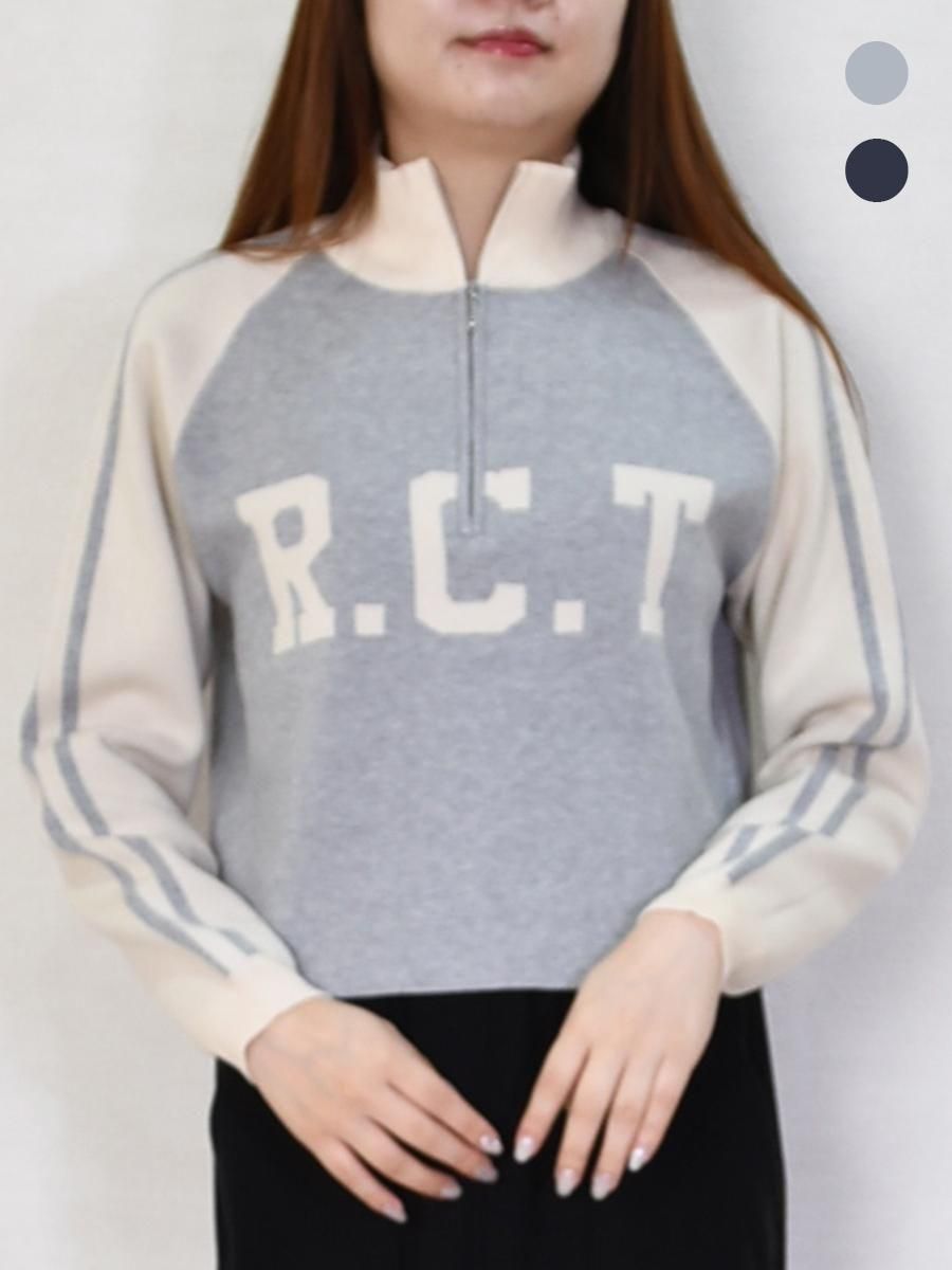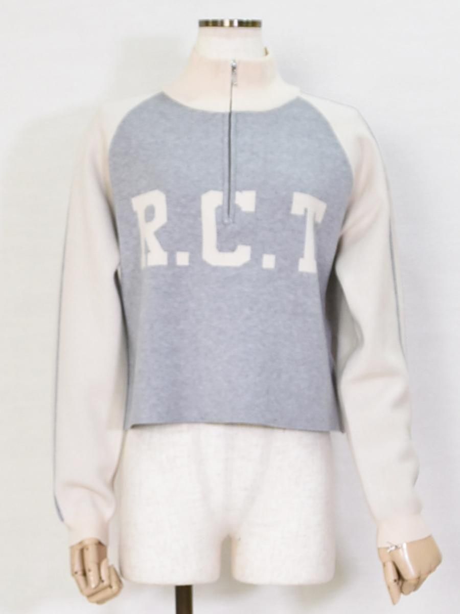 ayane(アヤン)のハーフZIPショート丈ロゴニットプルオーバー。スポーティ感MAXのキャッチーなロゴニットです。