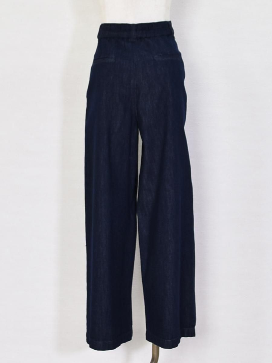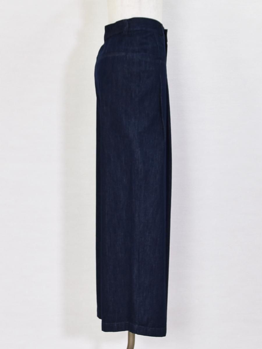 PASSIONE(パシオーネ)のデニムポケットタックパンツ。ハリのあるコットン素材を使用したワイドパンツ。
