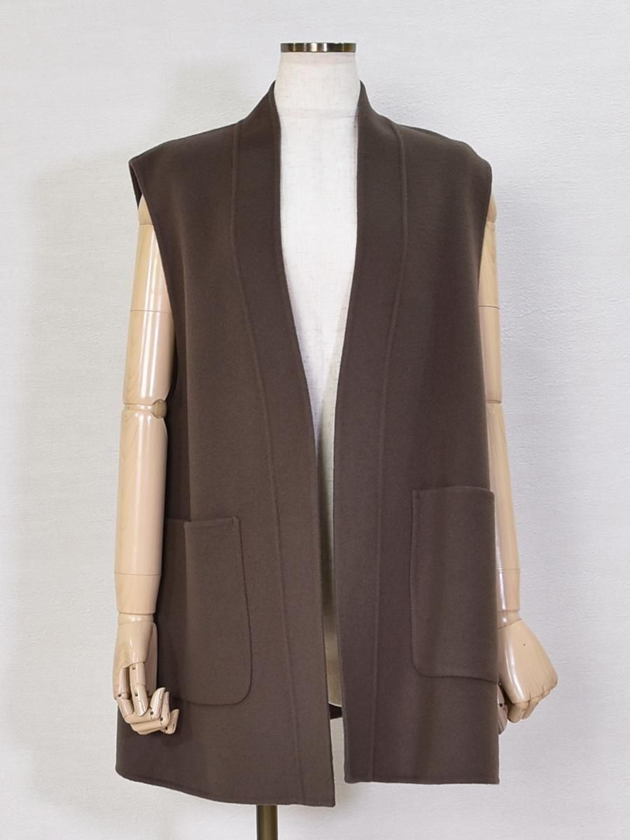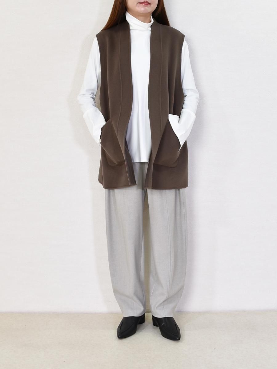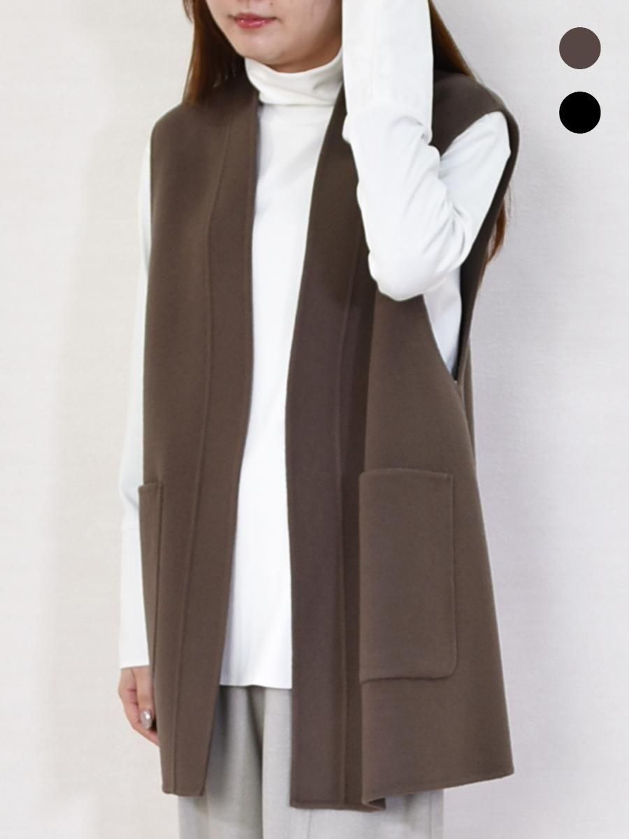 PASSIONE(パシオーネ)のポケット付きジレ。しなやかで温かみのある上質な生地を使用し、軽やかに羽織れるジレ。