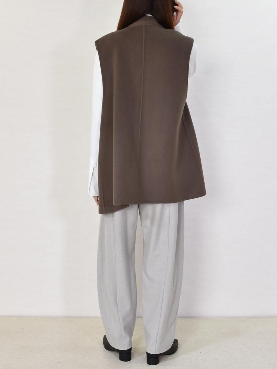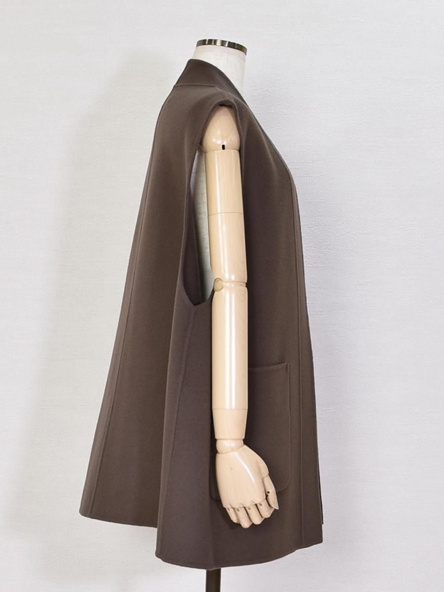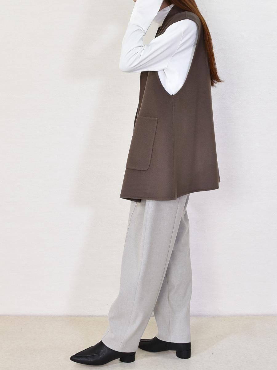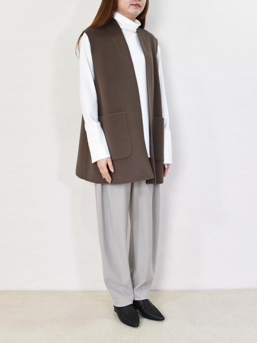 PASSIONE(パシオーネ)のポケット付きジレ。しなやかで温かみのある上質な生地を使用し、軽やかに羽織れるジレ。