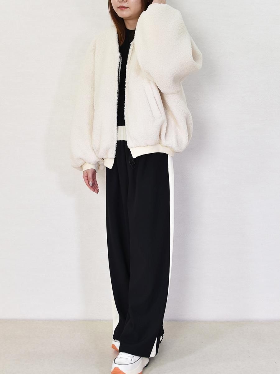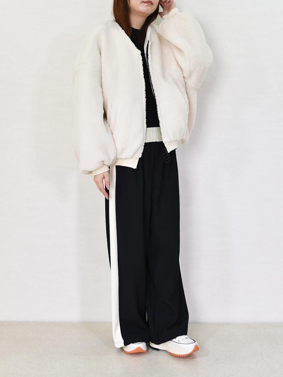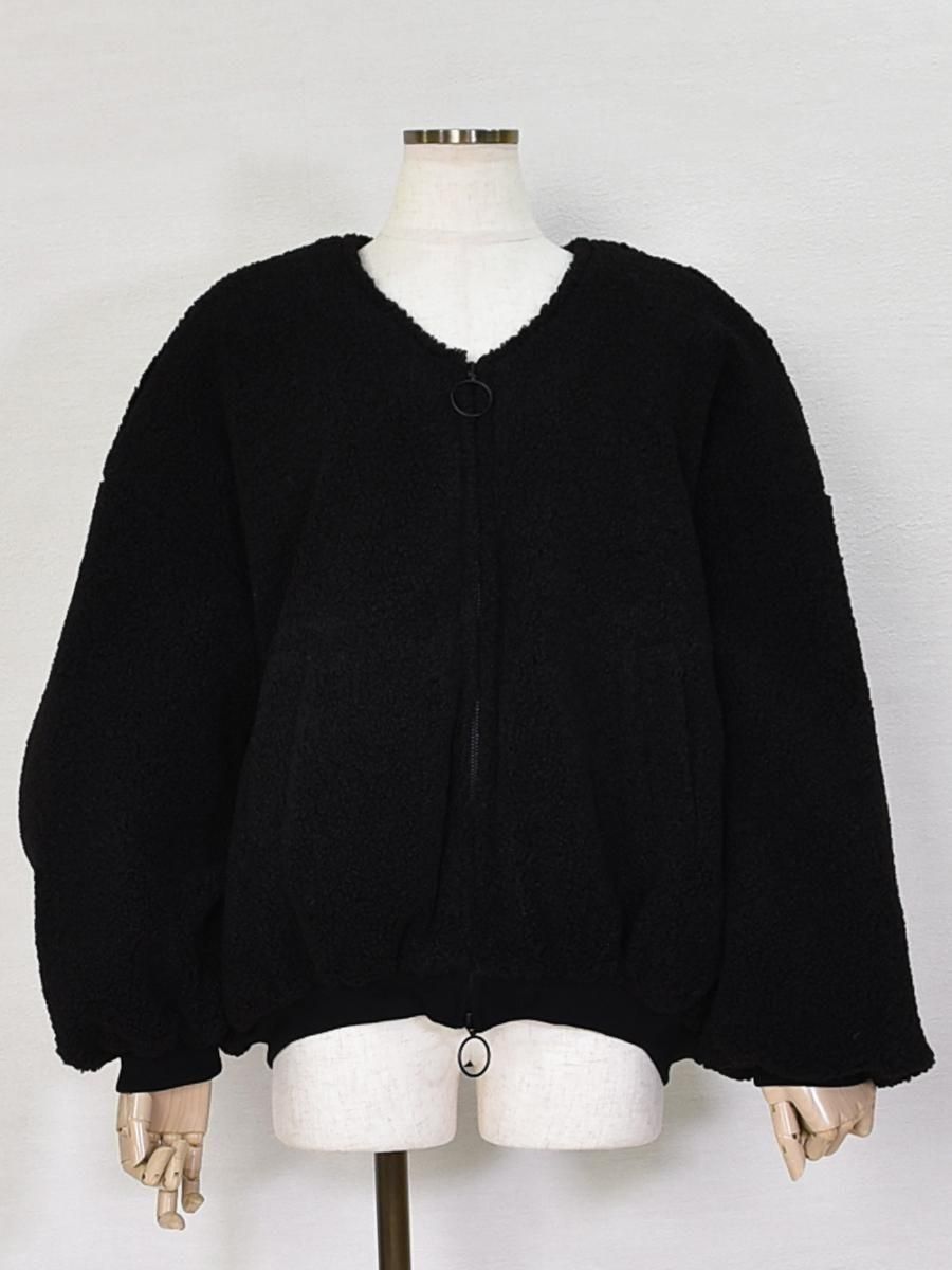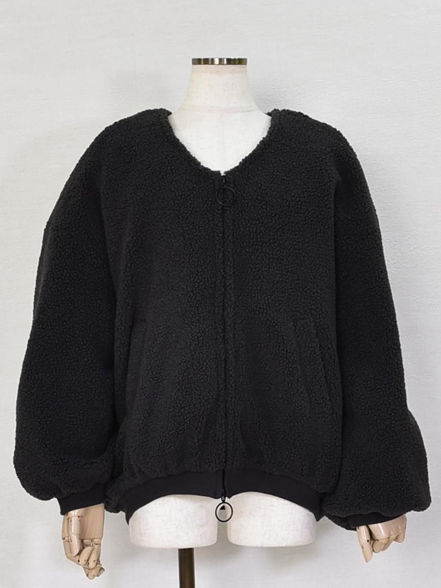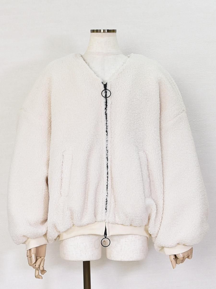 ayane(アヤン)のバックロゴ刺繡ボアブルゾン。ふわふわとしたボア素材が冬らしい軽くて暖かなジップブルゾン。