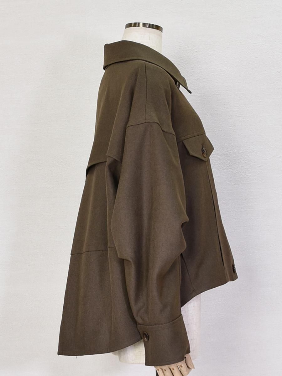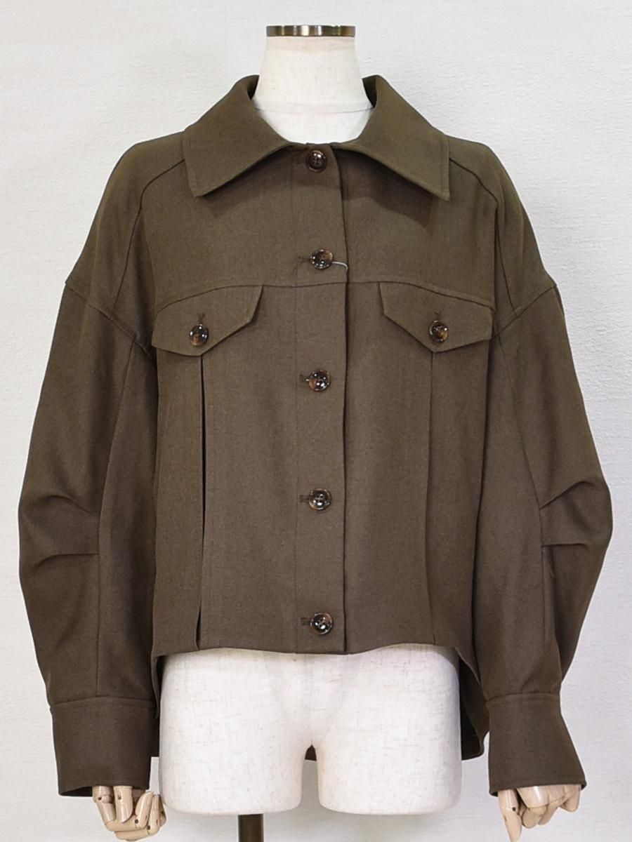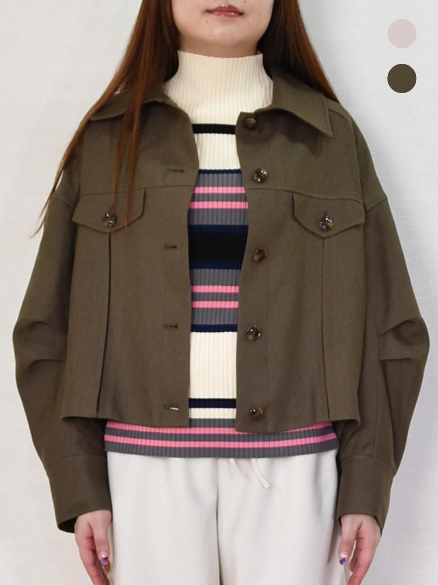trois(トロワ)のバレルスリーブショートジャケット。程よい厚みのウールライクカルゼを使用したバレルスリーブのショートジャケット。